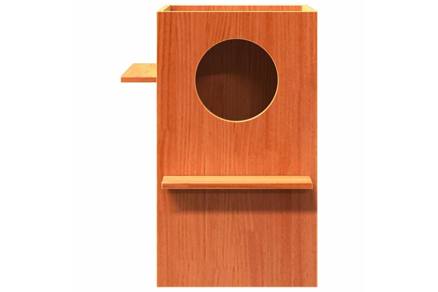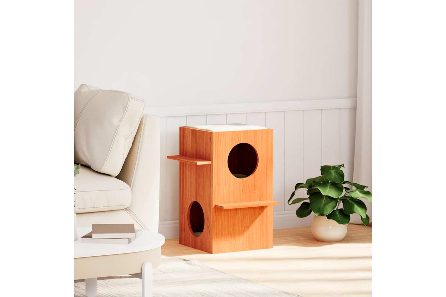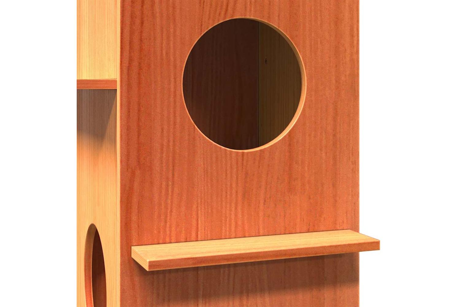 This wooden cat house is designed to provide your cat with a private space for sleeping and playing.