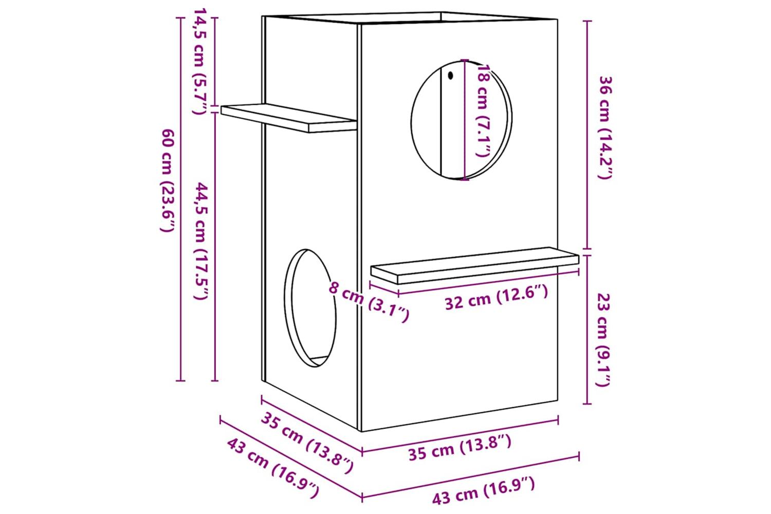 - Dimensions: 43 x 43 x 60 cm (L x W x H)