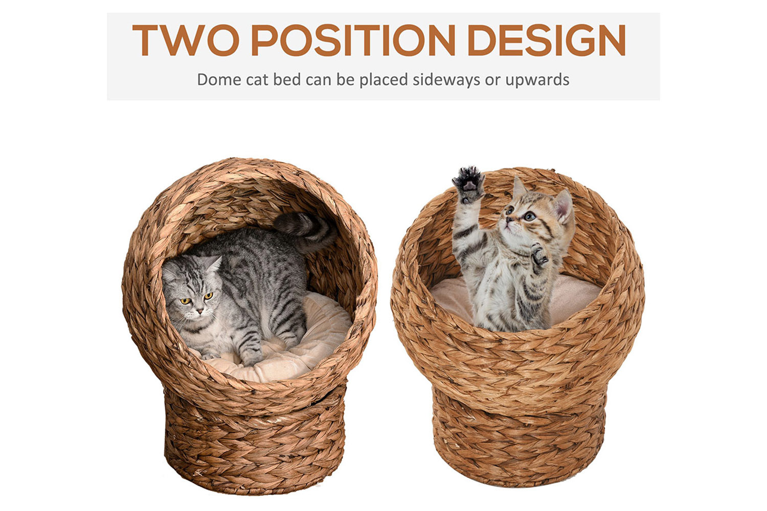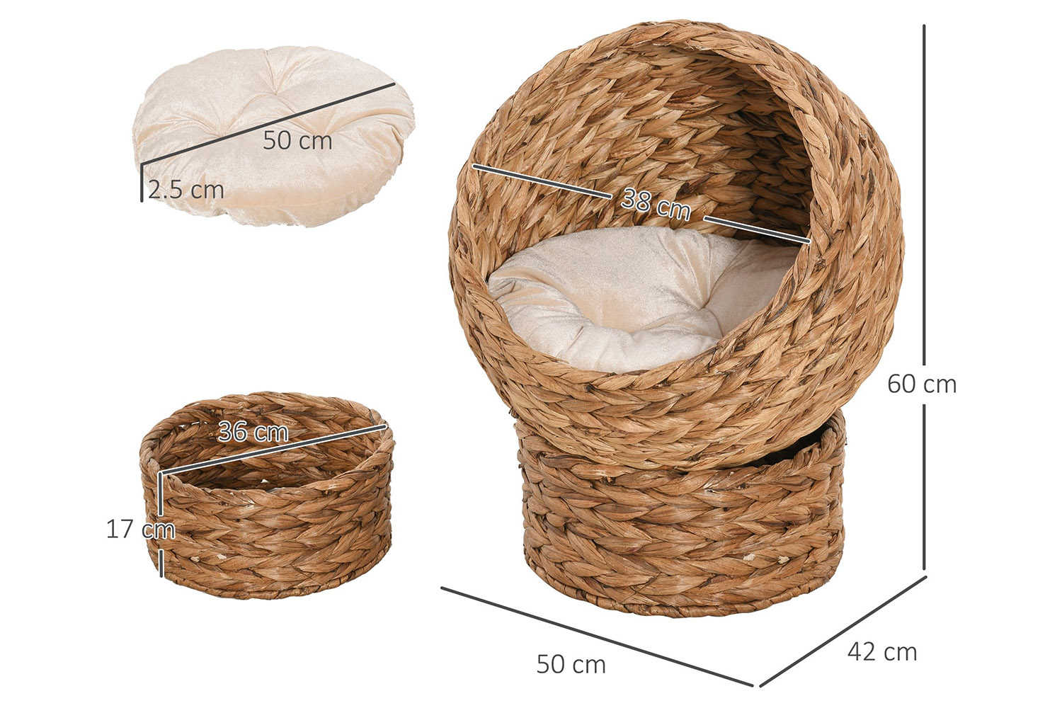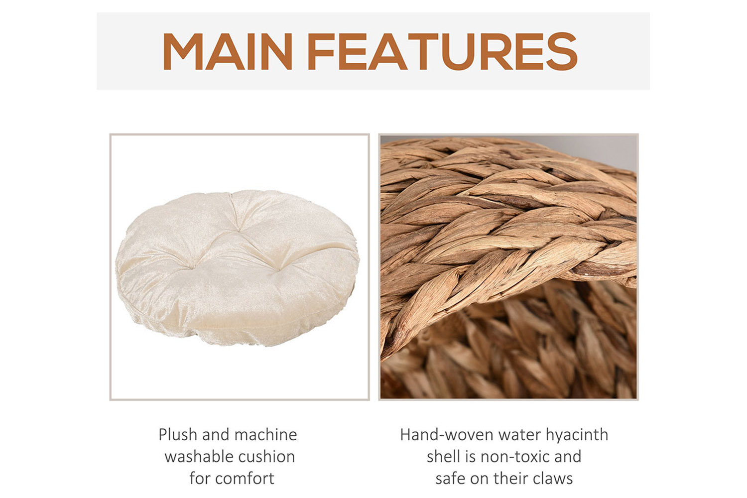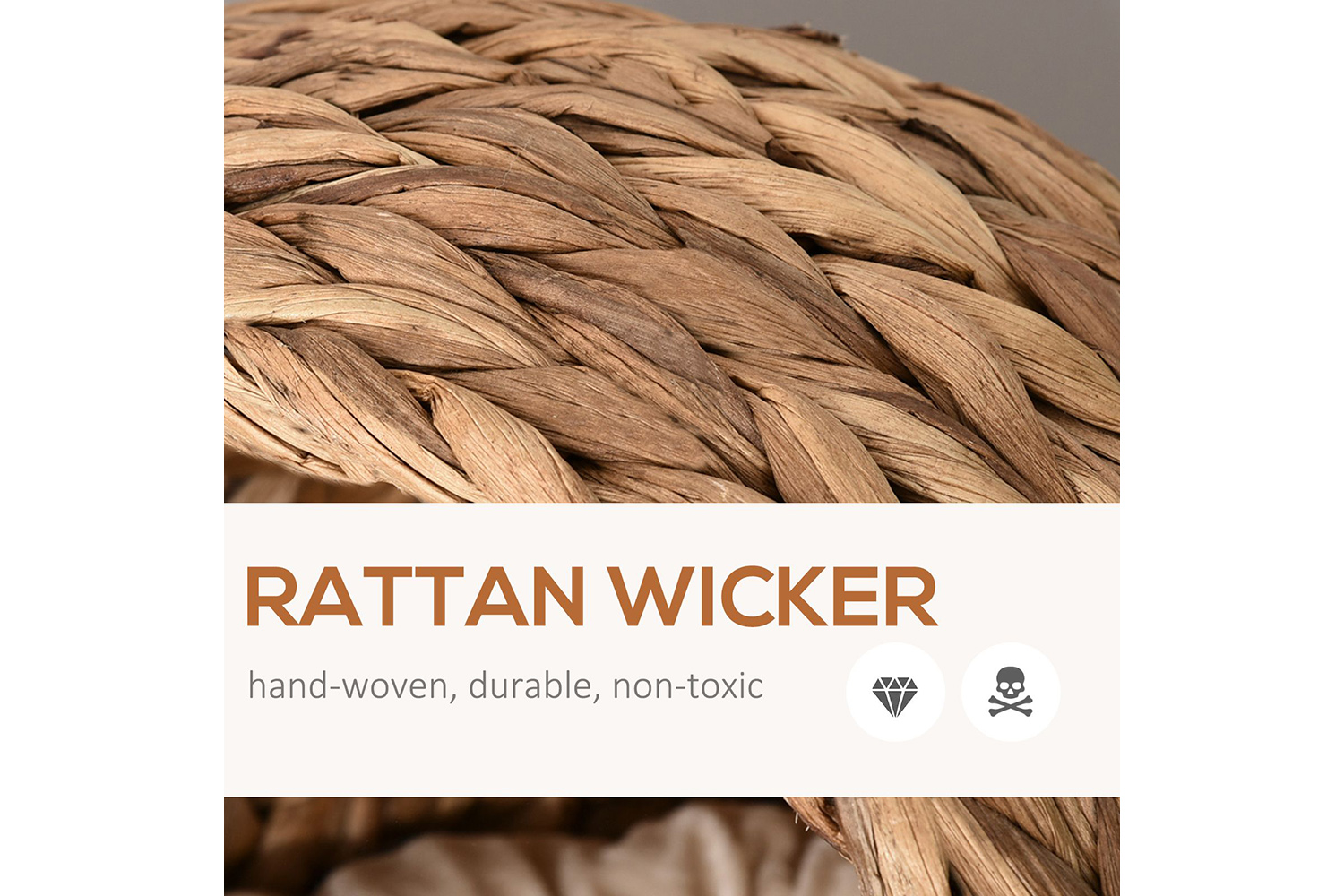 PawHut D30-104 Rattan Cat House | Natural Brown/Beige