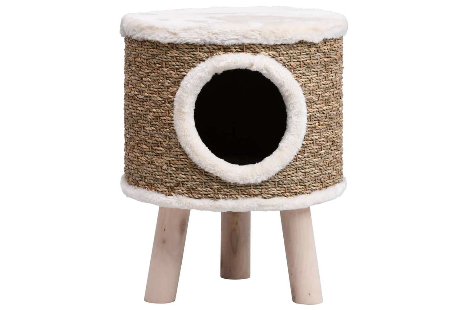 It features a cosy hideaway with a large entry for your cats to curl up and take a nap. It can also be used as the cat tree for your cats to climb. The seagrass carpets allow your little ones to sharpen their claws.