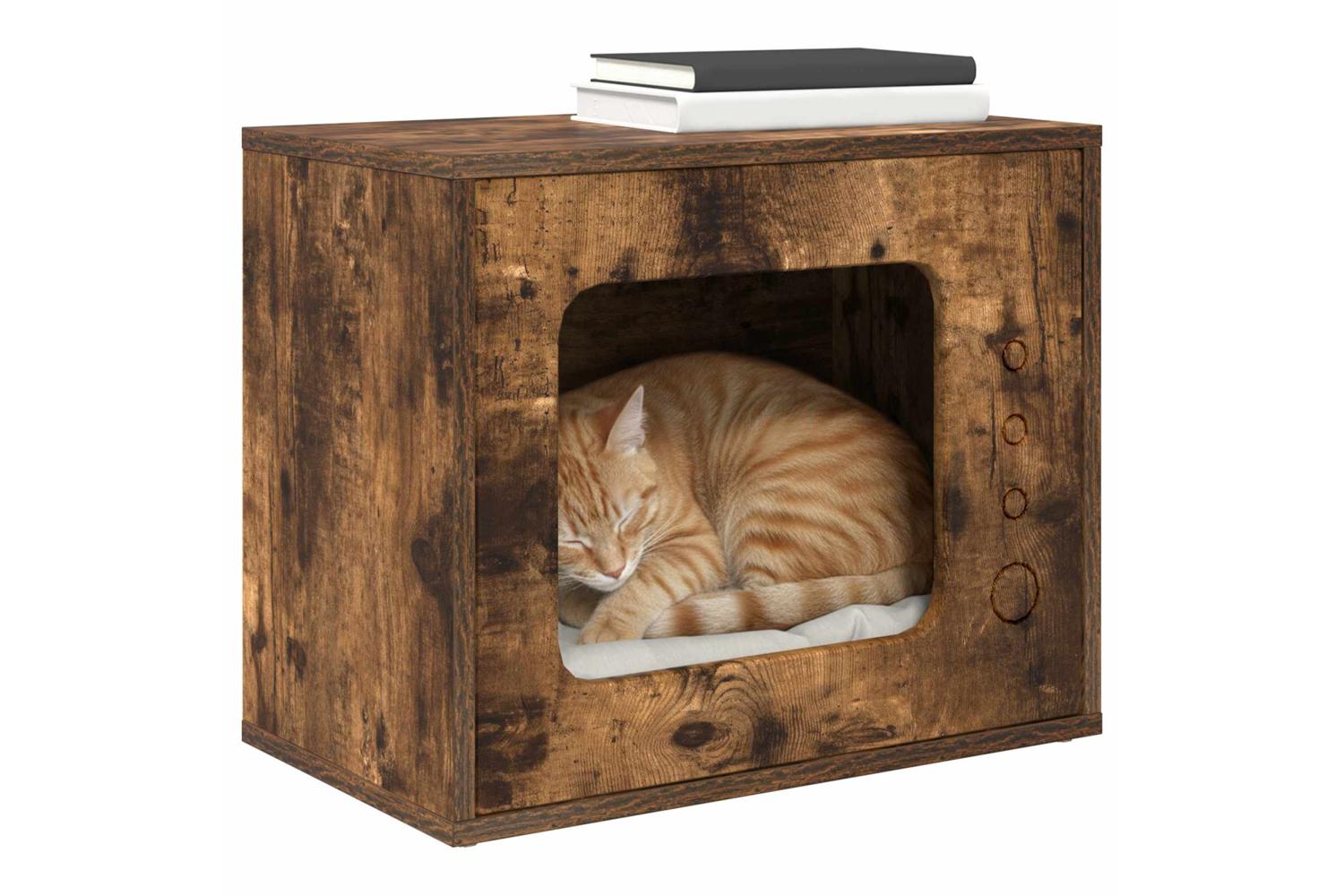 Vidaxl Cat House Smoked Oak 51 X 30 X 42 Cm Engineered Wood
