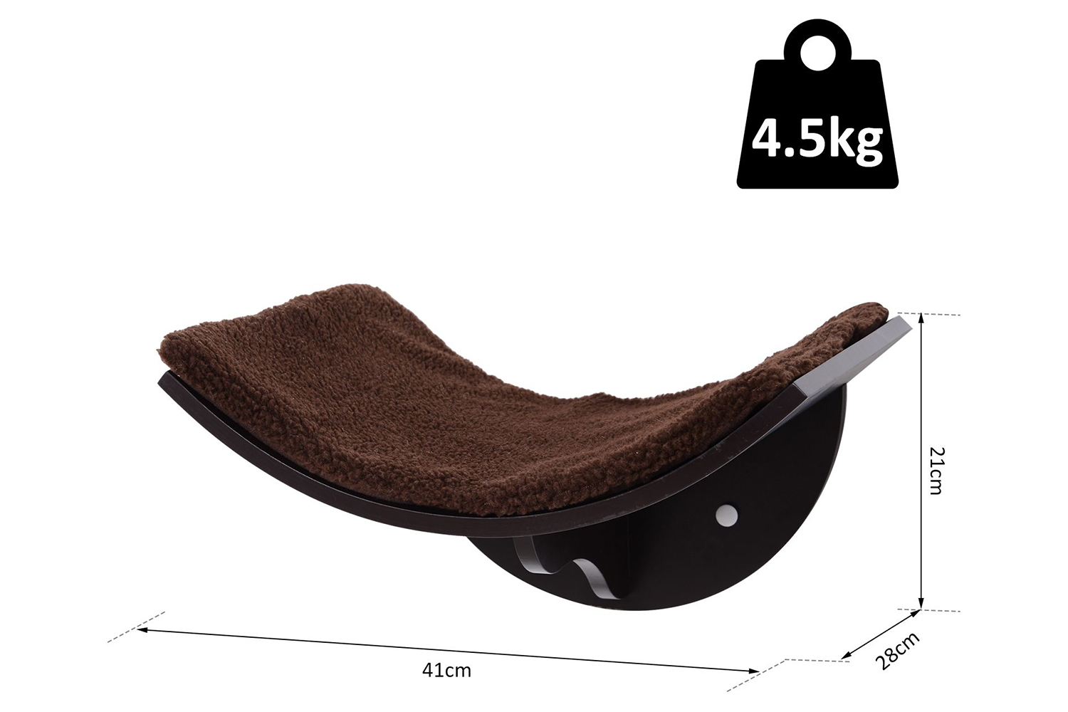 Rattle up your pet's thirst for curiosity and adventure with this on-wall cat shelf from PawHut. Made from high-quality MDF for long-lasting strength which steadily holds up to 4.5kg in weight, it is crafted into a curved design to allow them to rest peacefully and prevent them from falling off, with a Berber fleece covering for comfort and warmth. Wall mountable in design thanks to the attachment board below the shelf, it comes complete with all the required accessories to set up. Great for utilising your walls and giving them their own space away from any other pets you may have.