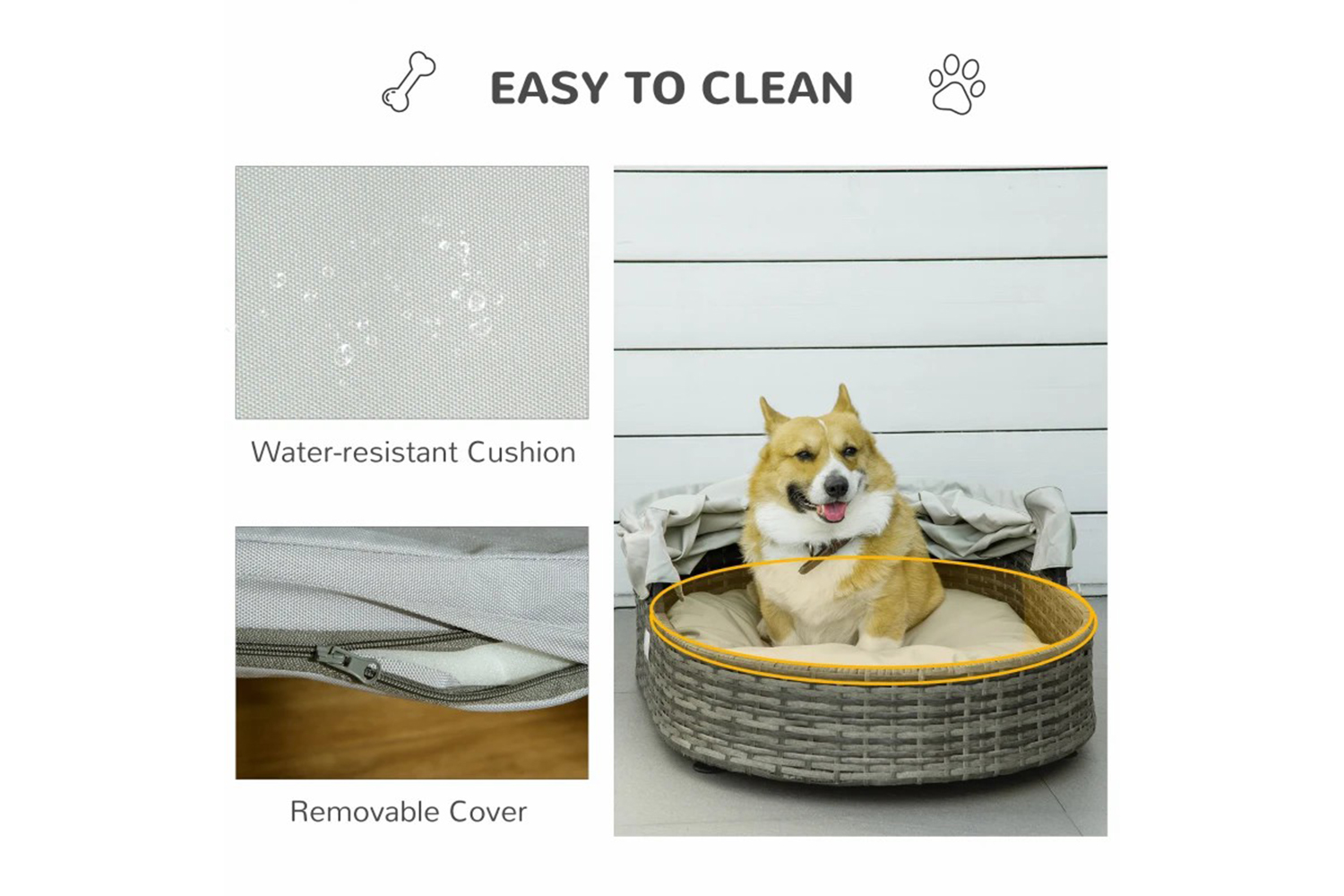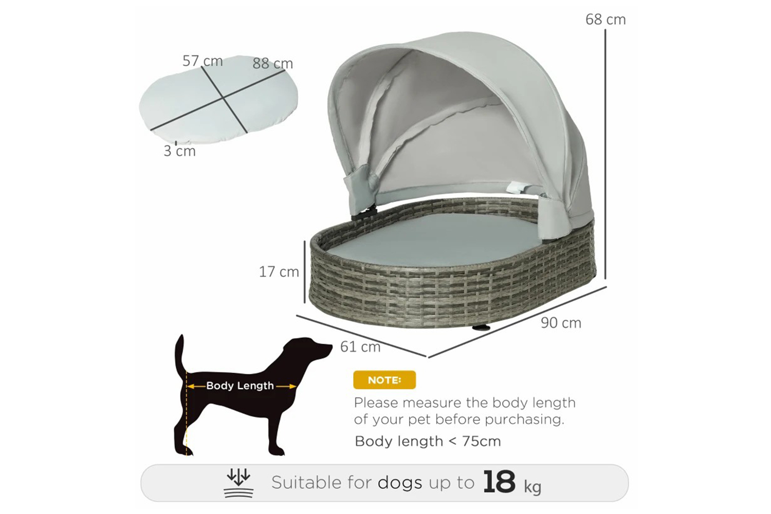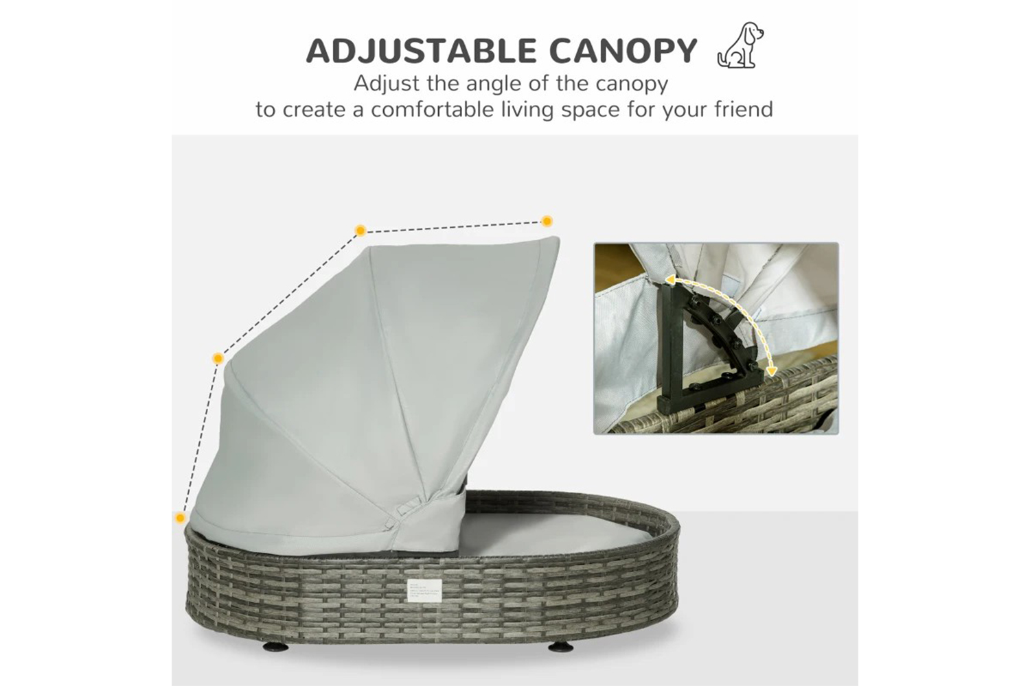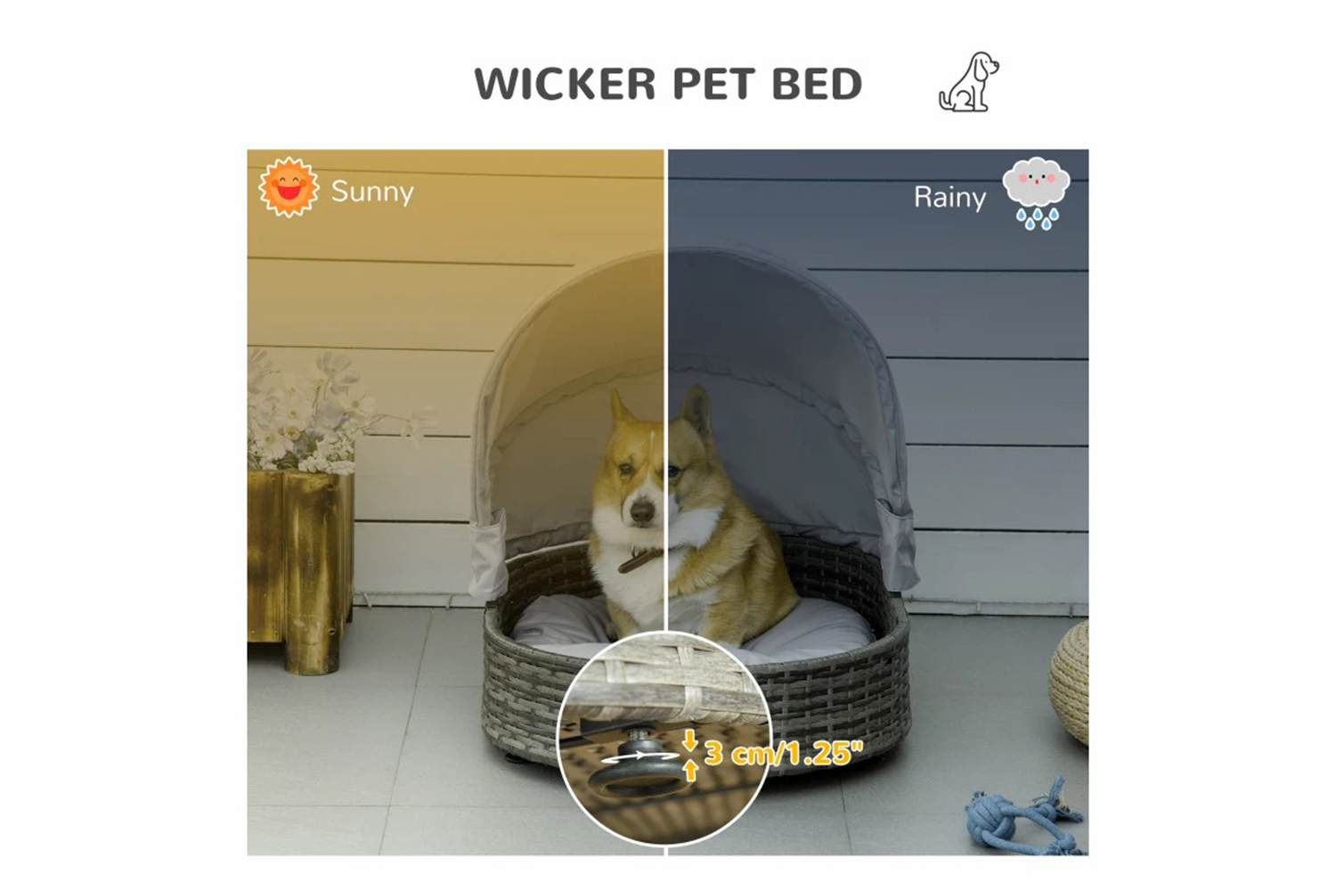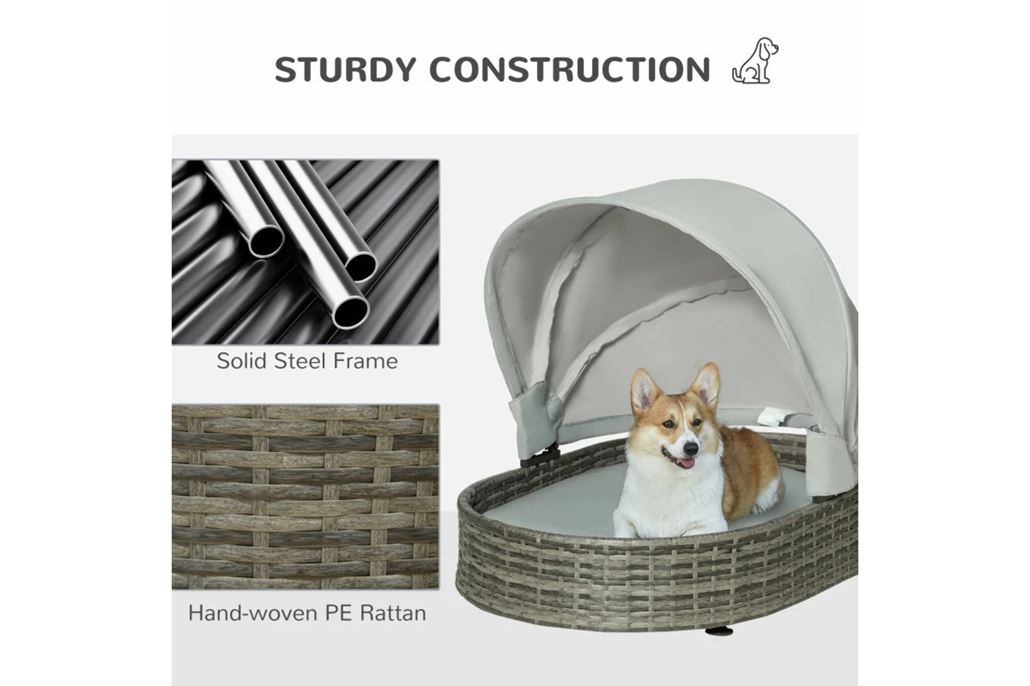 This PawHut covered dog bed keeps pets comfortable, whether they're inside or outside. Made from steel and rattan, it's a solid piece, where dogs can relax all day. It comes with a removable cushion, which can be washed to keep their space clean and cosy. An adjustable canopy lets you choose the perfect angle, so they're properly sheltered from hot and wet weather. Comfy, stable and durable – this will be your pet's new favorite spot for years to come.