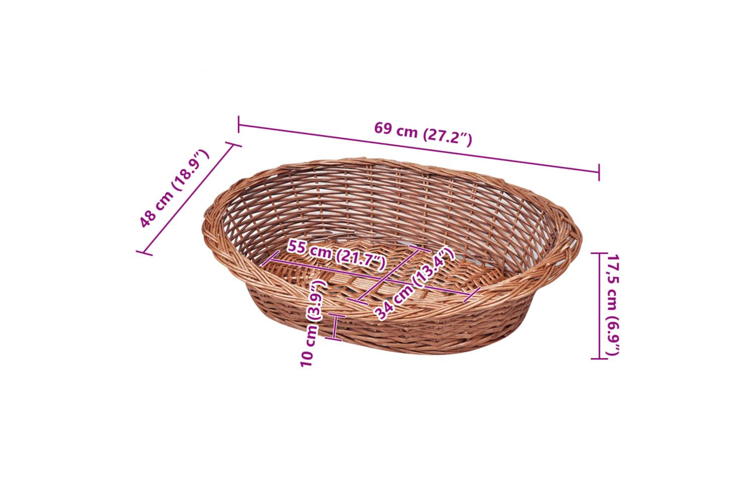 This dog basket is characterised by excellent craftsmanship and construction. Made of willow, it is sturdy, yet lightweight enough to carry along. This pet bed can also be used outside, in the garden or on the patio, for your cat, kitten, dog or puppy to sleep, rest or play. It is also easy to clean and maintain.