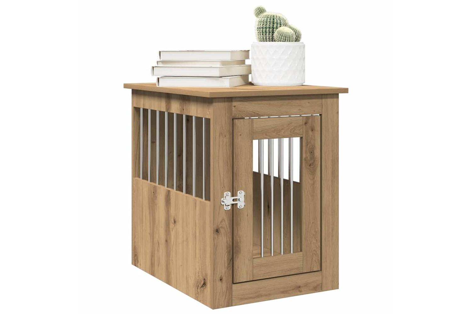This dog crate furniture, serving as both a dog cage and an end table, makes a practical and eye-catching addition to your living room.