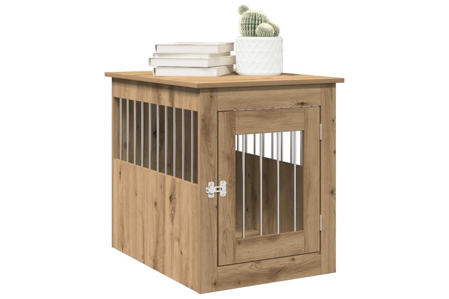 This dog crate furniture, serving as both a dog cage and an end table, makes a practical and eye-catching addition to your living room.