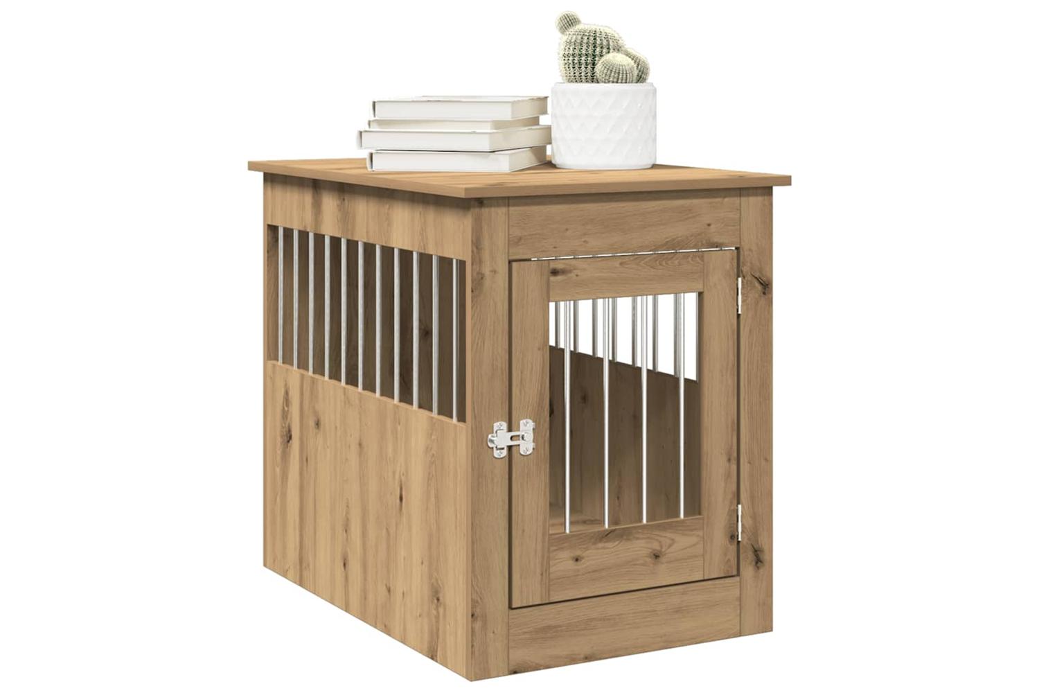 This dog crate furniture, serving as both a dog cage and an end table, makes a practical and eye-catching addition to your living room.