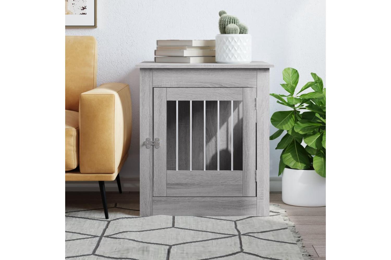 This dog crate furniture, serving as both a dog cage and an end table, makes a practical and eye-catching addition to your living room.