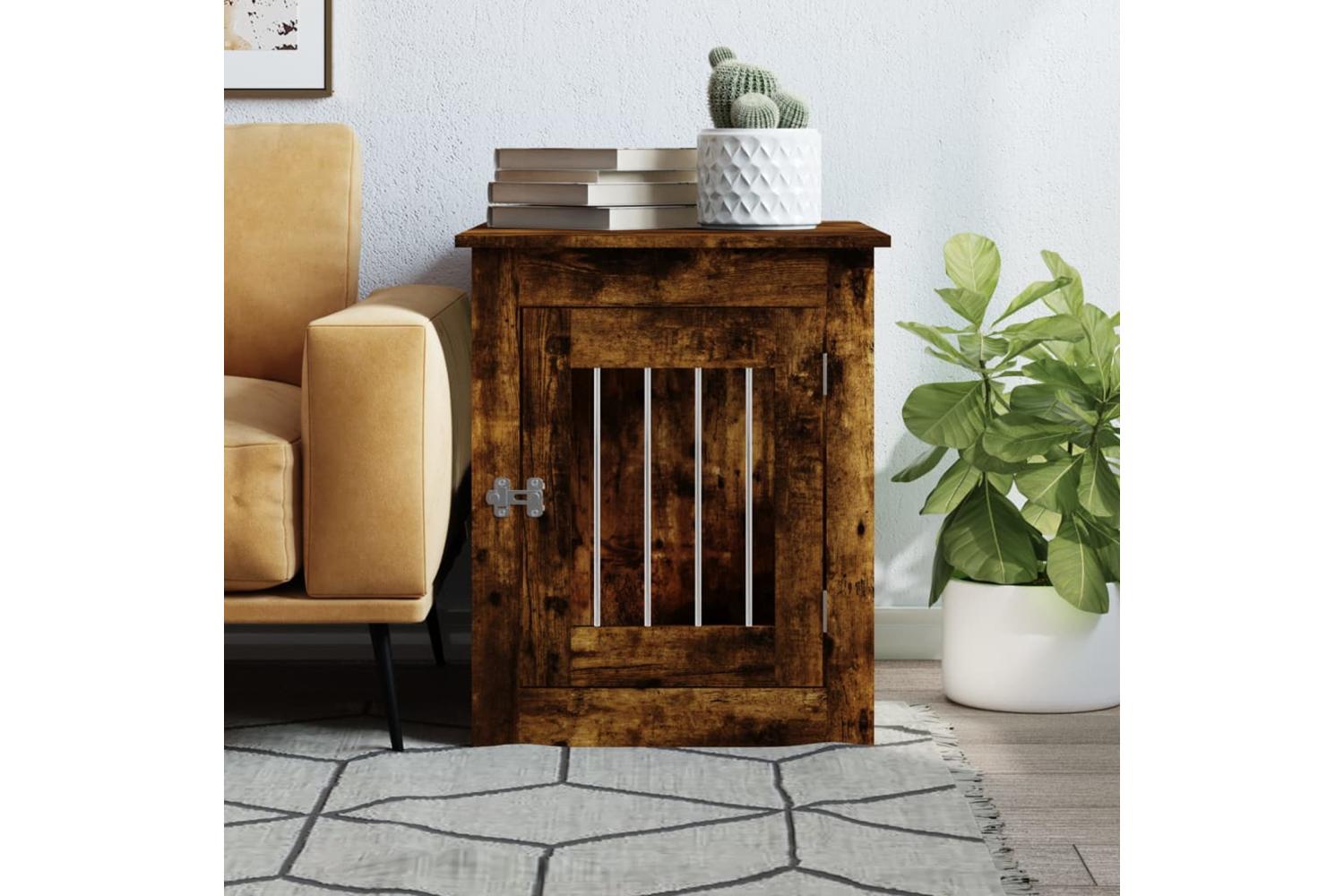 This dog crate furniture, serving as both a dog cage and an end table, makes a practical and eye-catching addition to your living room.