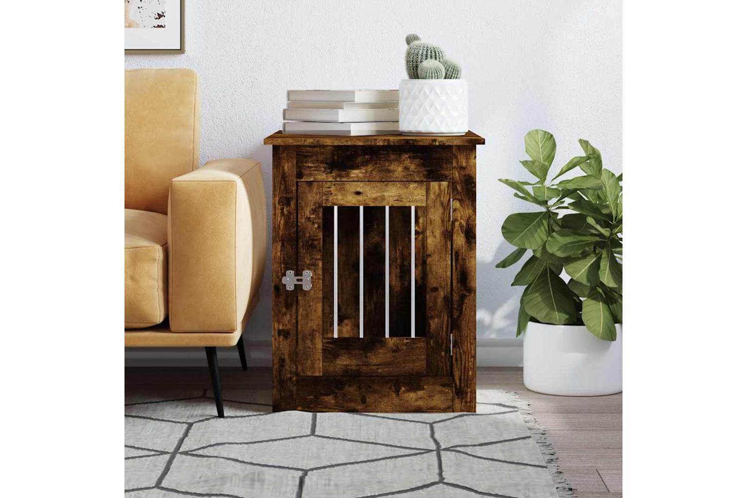 This dog crate furniture, serving as both a dog cage and an end table, makes a practical and eye-catching addition to your living room.