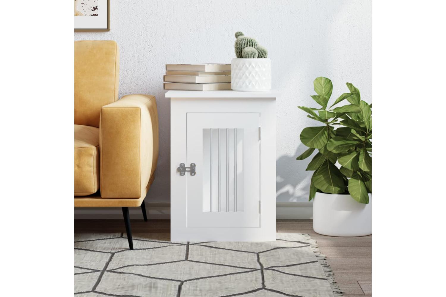 This dog crate furniture, serving as both a dog cage and an end table, makes a practical and eye-catching addition to your living room.