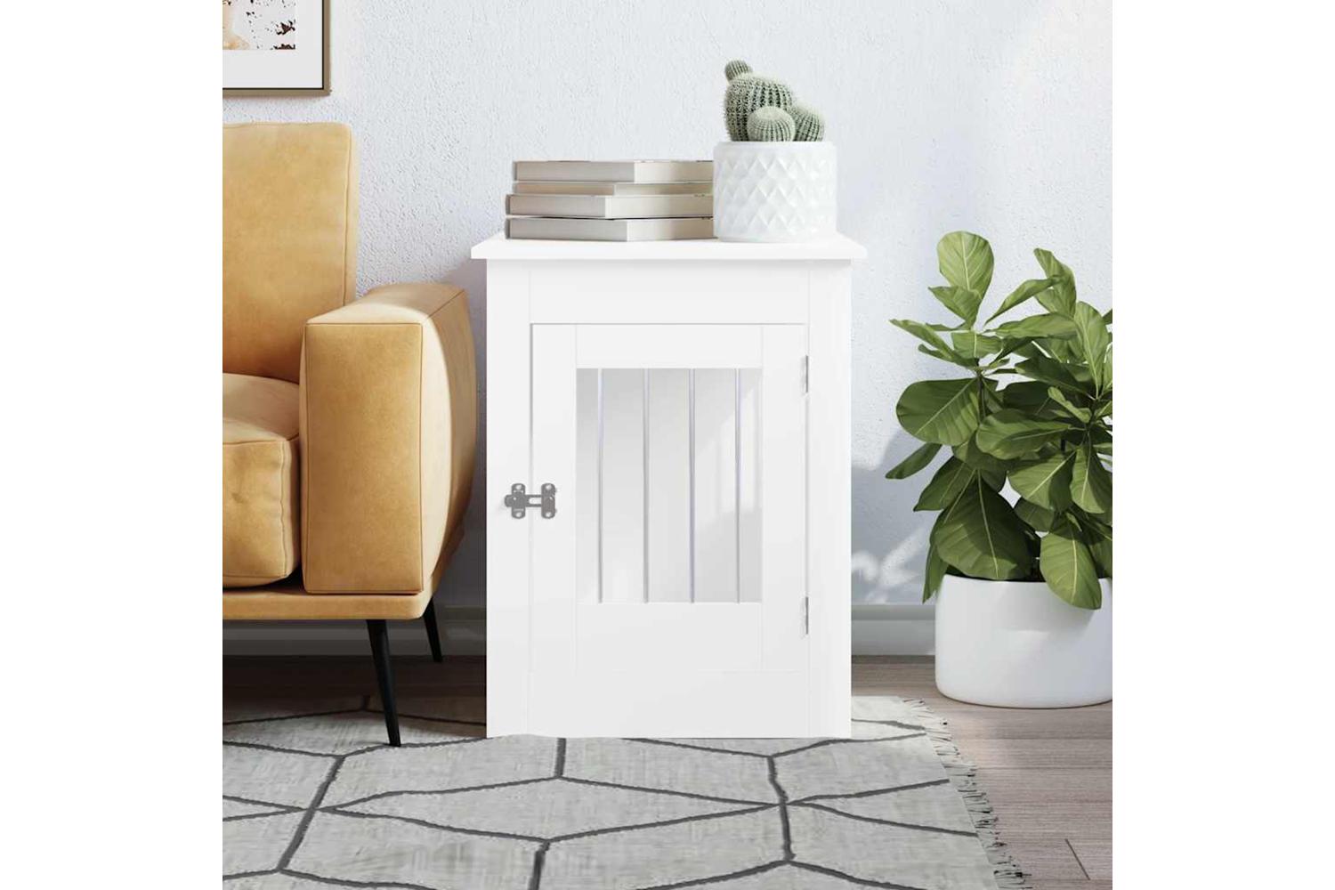 This dog crate furniture, serving as both a dog cage and an end table, makes a practical and eye-catching addition to your living room.
