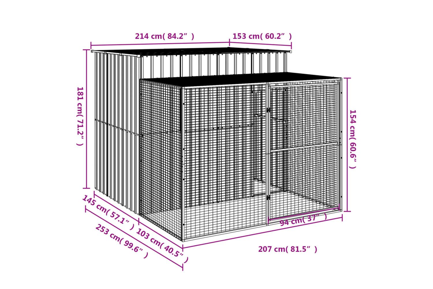 - Durable construction: Thanks to the sturdy and heavy-duty galvanised steel construction, the dog kennel is durable and built to last.