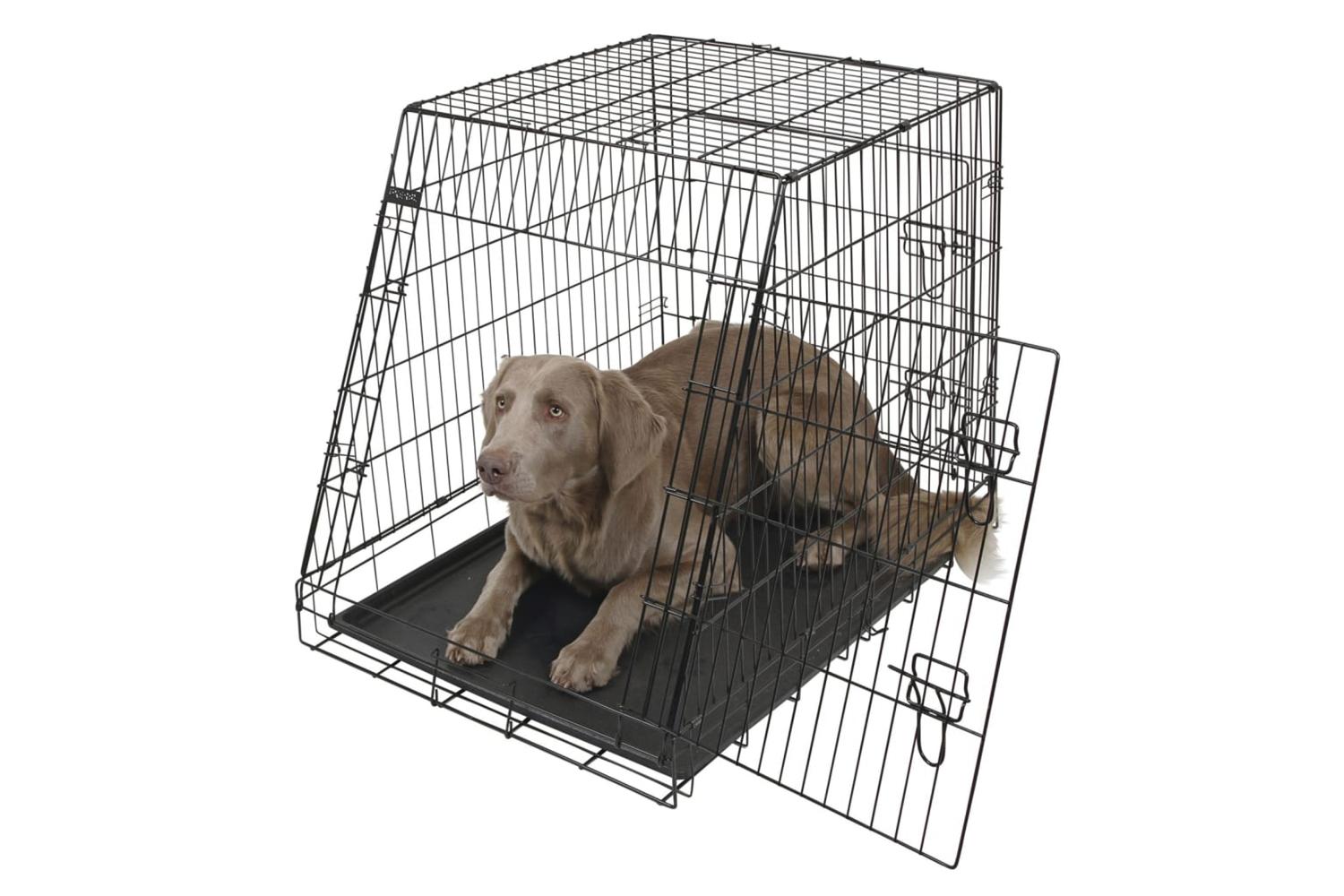 The 107x74x85 cm dog cage with two doors from Kerbl is a sturdy pet crate perfect for use at exhibitions, pet hotels or holiday homes.