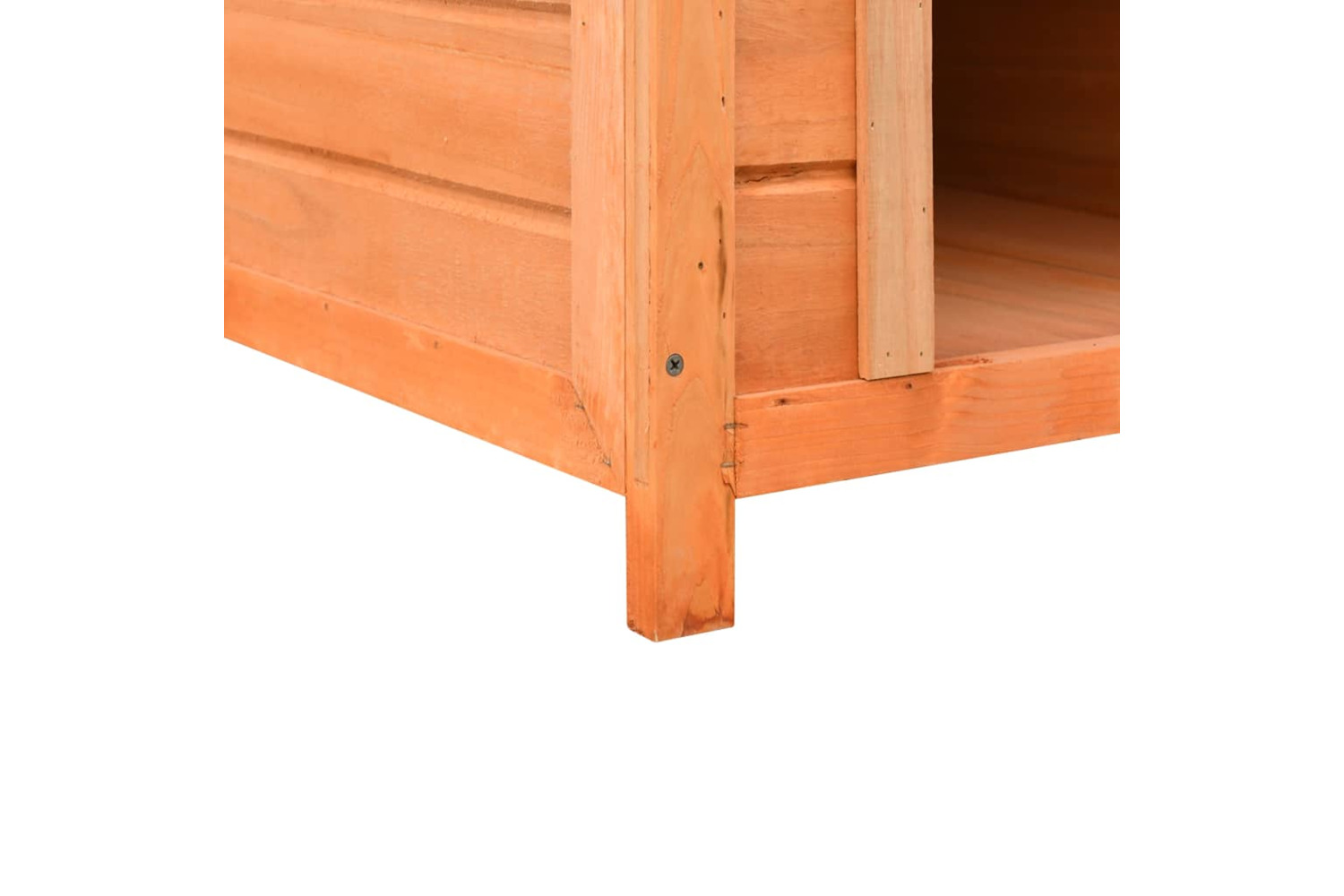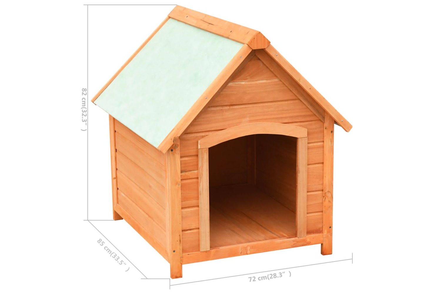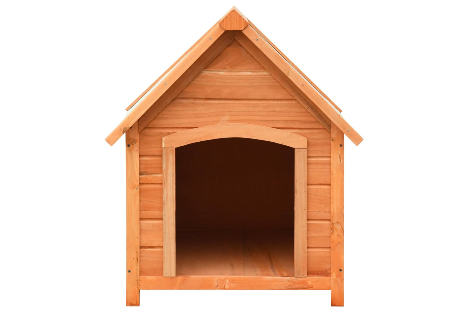 This sturdy wooden dog house protects your furry friend from some adverse weather conditions and provides a great place for your dog to relax.