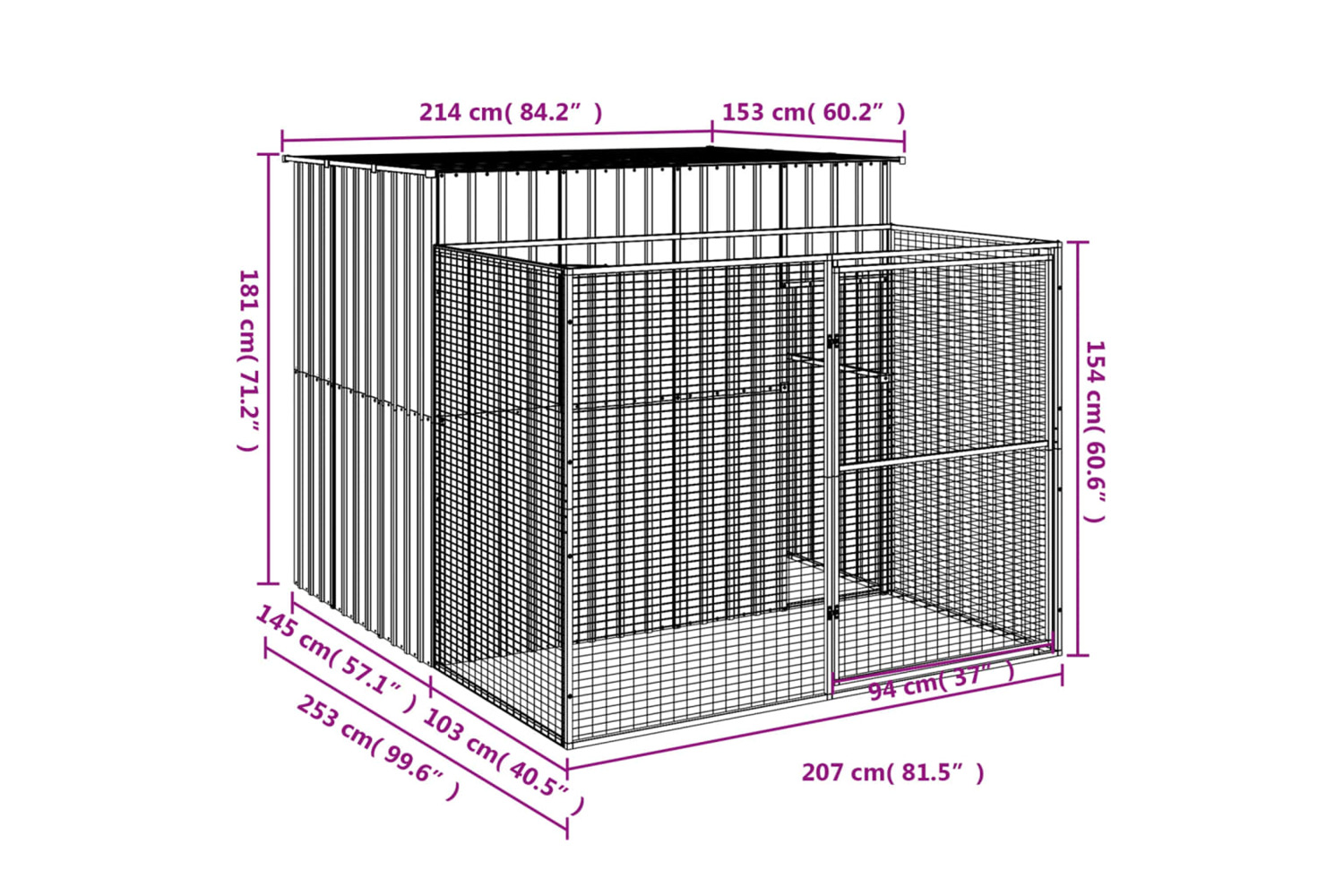 - Outer dimensions: 207 x 103 x 154 cm (W x D x H)