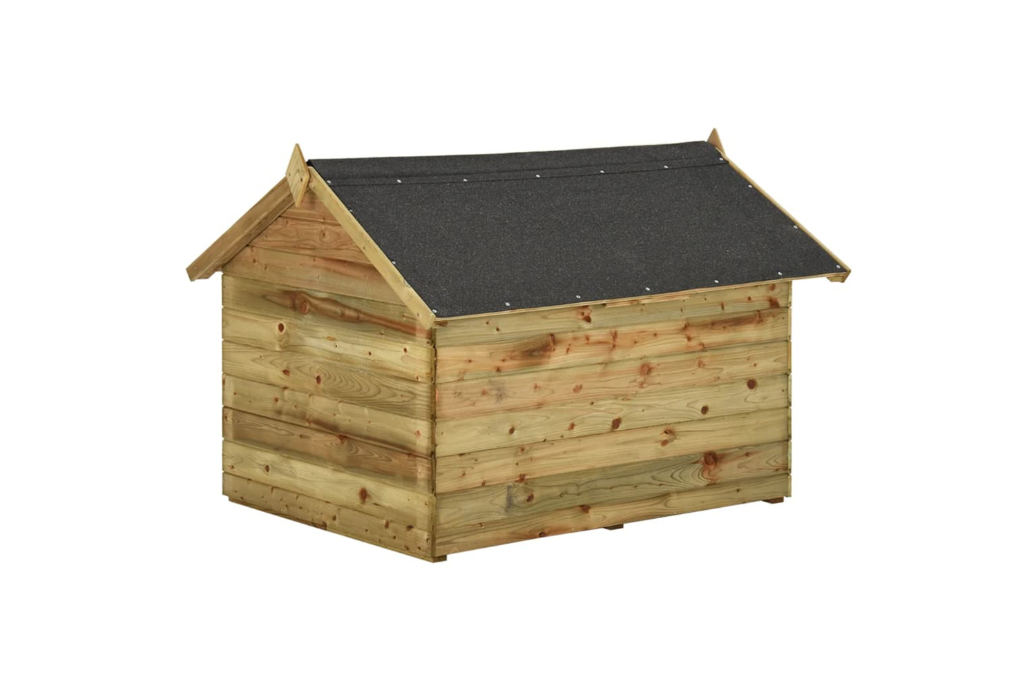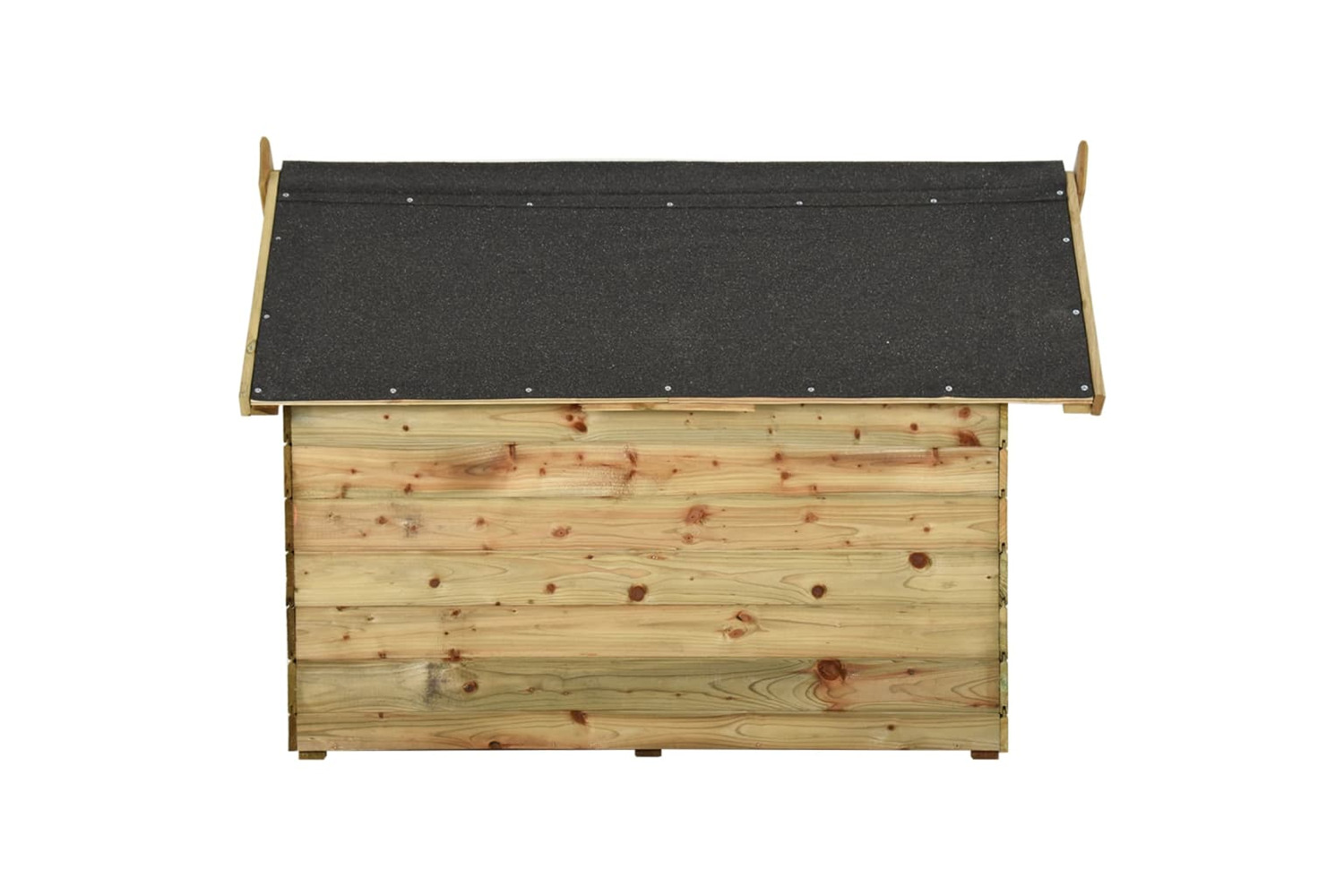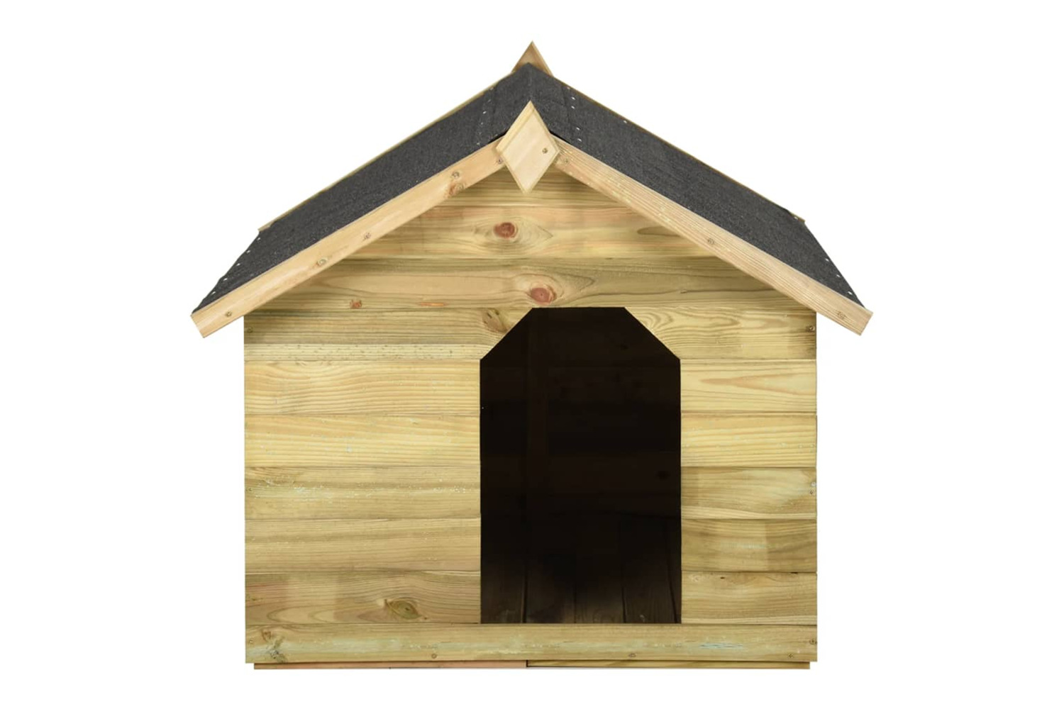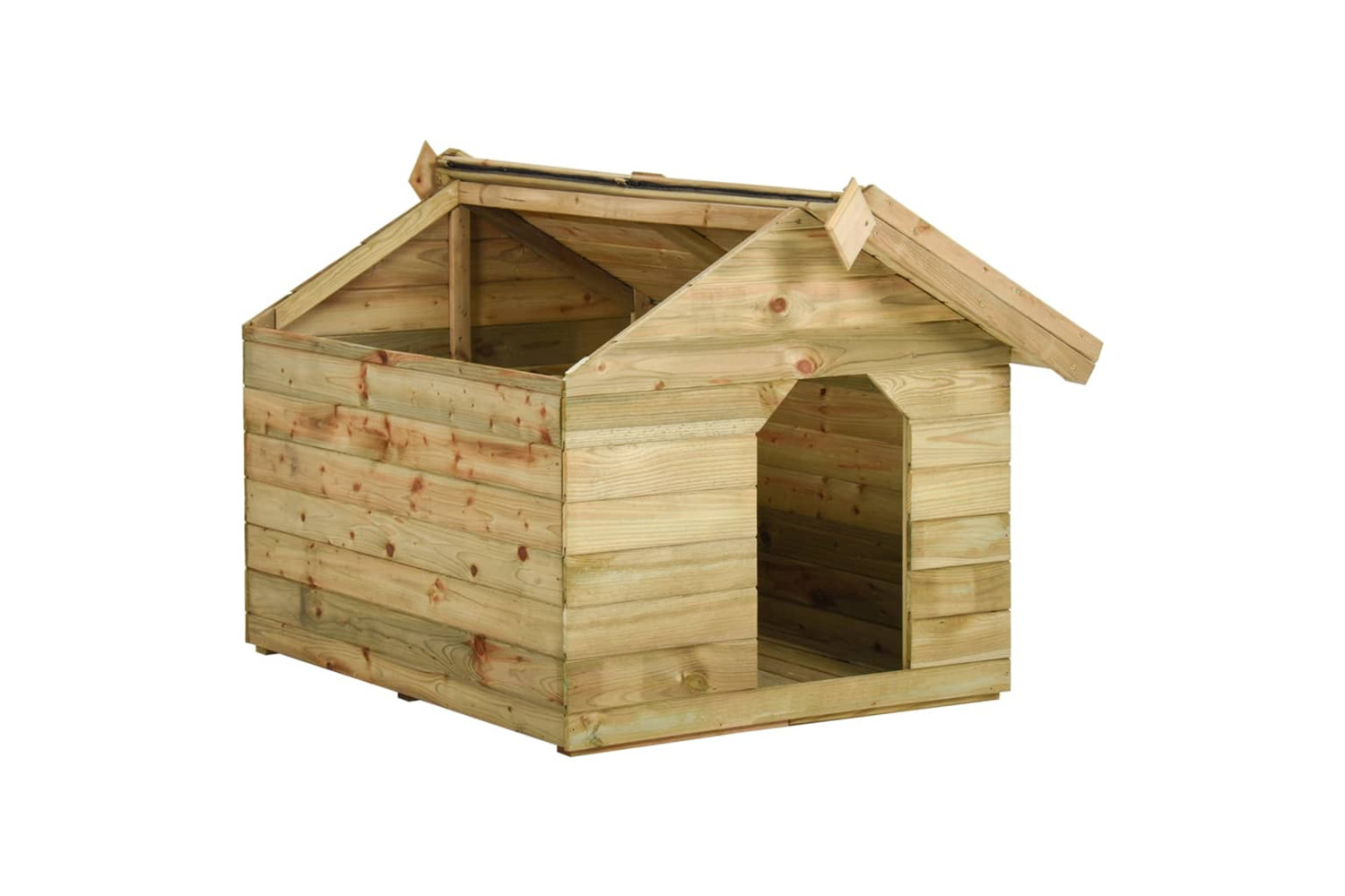 The house is crafted from high-quality, impregnated pinewood, which makes it durable, weather and rot resistant. Thanks to the unique roof design, it can be opened up for easy cleaning and extra ventilation to reduce the bad smell. It is also covered with tar paper to be water resistant. This dog house is easy to assemble.