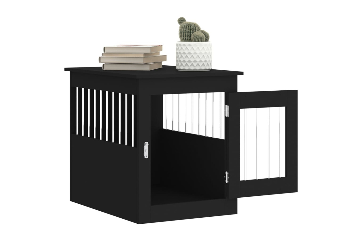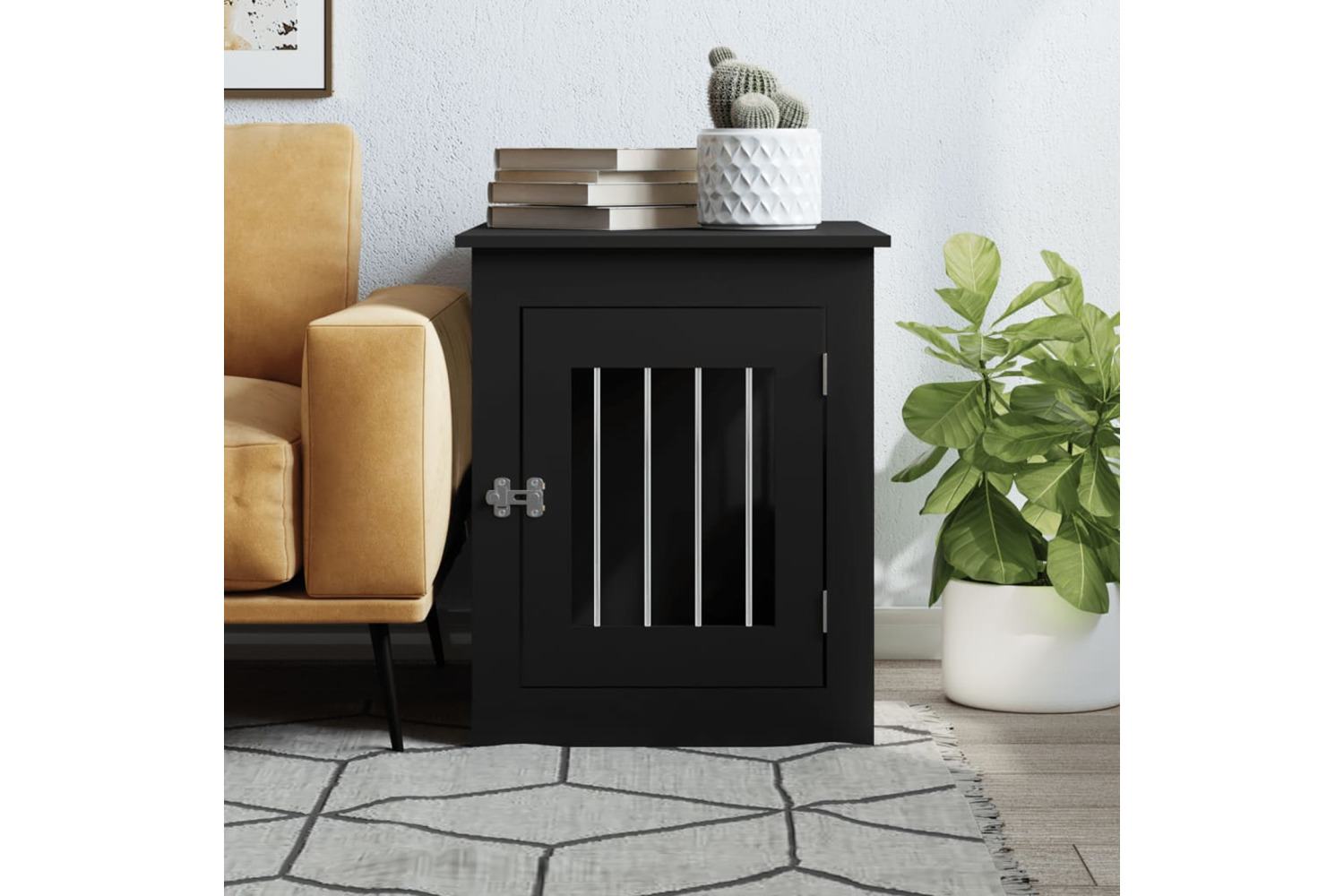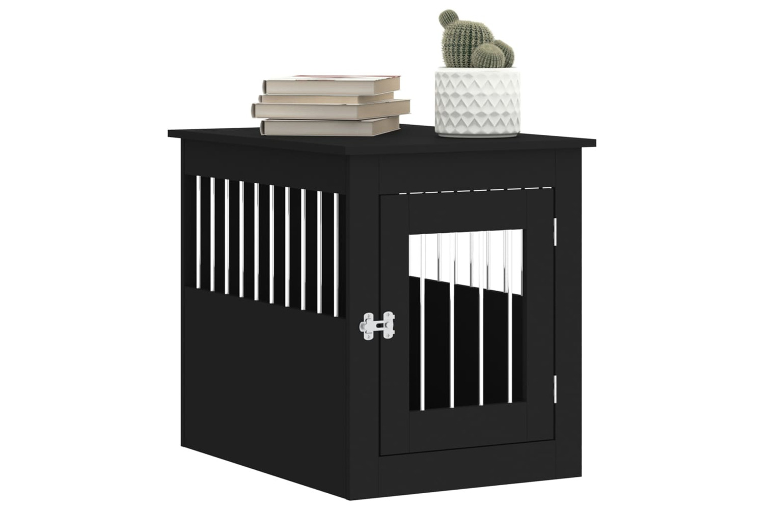 This dog crate furniture, serving as both a dog cage and an end table, makes a practical and eye-catching addition to your living room.