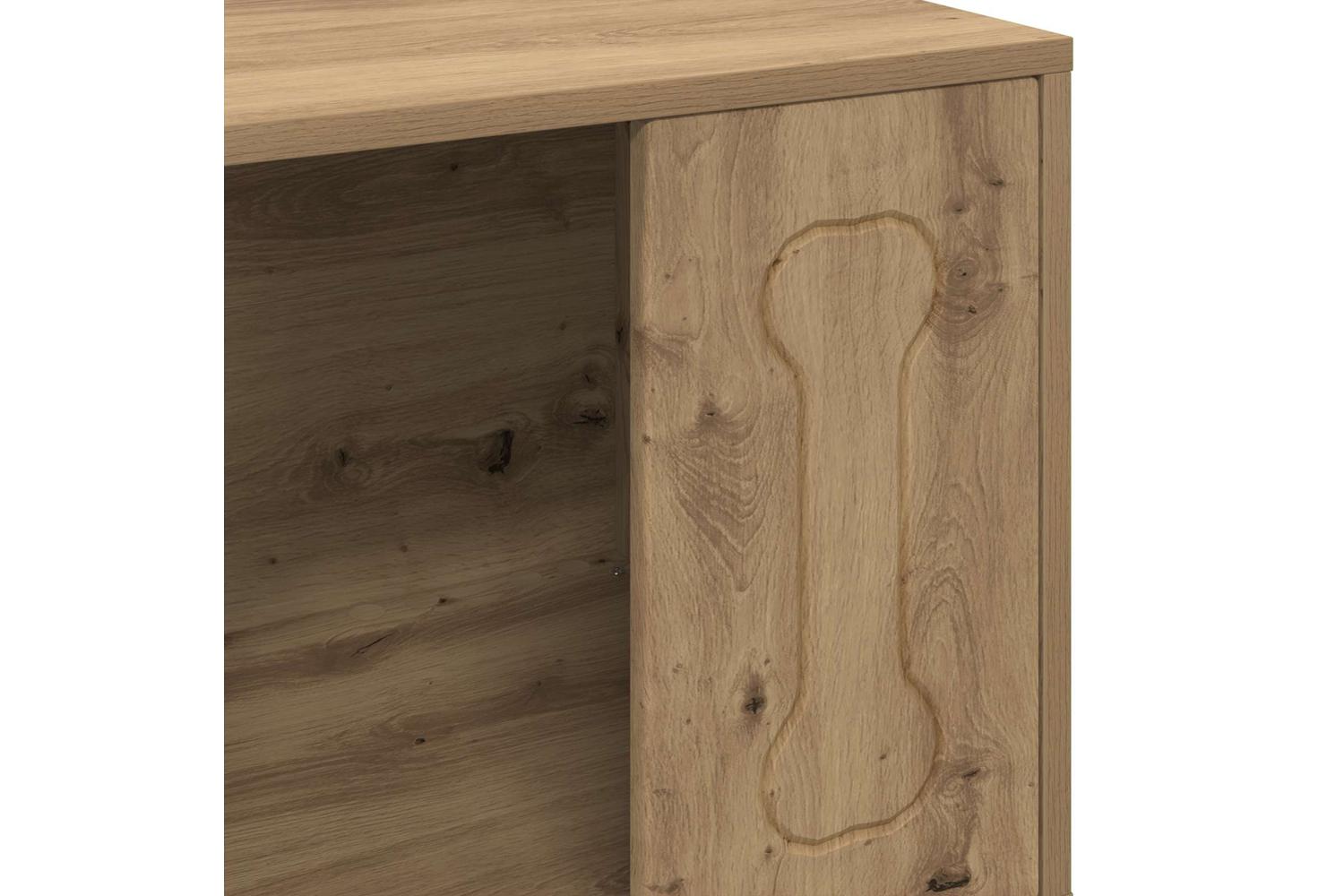- Engineered Wood Material The Modern Dog House is crafted from engineered wood, providing a robust structure that ensures longevity and reliability. Known for its flat surface and clean edges, engineered wood gives the dog house a polished finish, easily fitting in with modern home decor while offering easy maintenance.