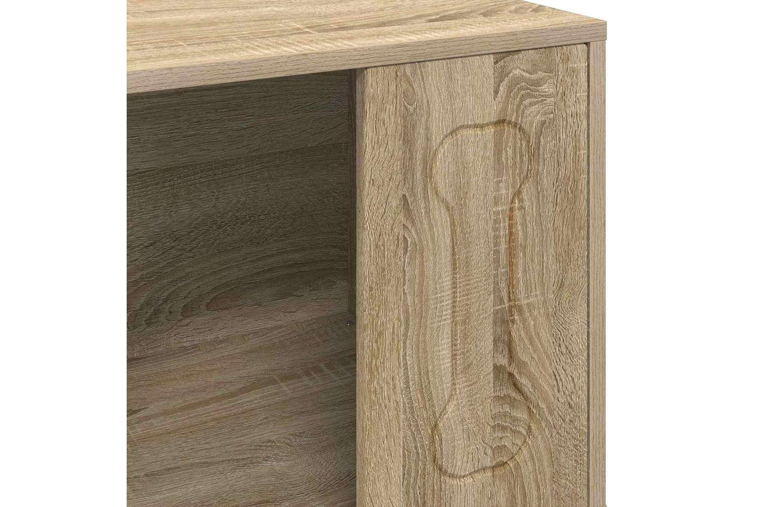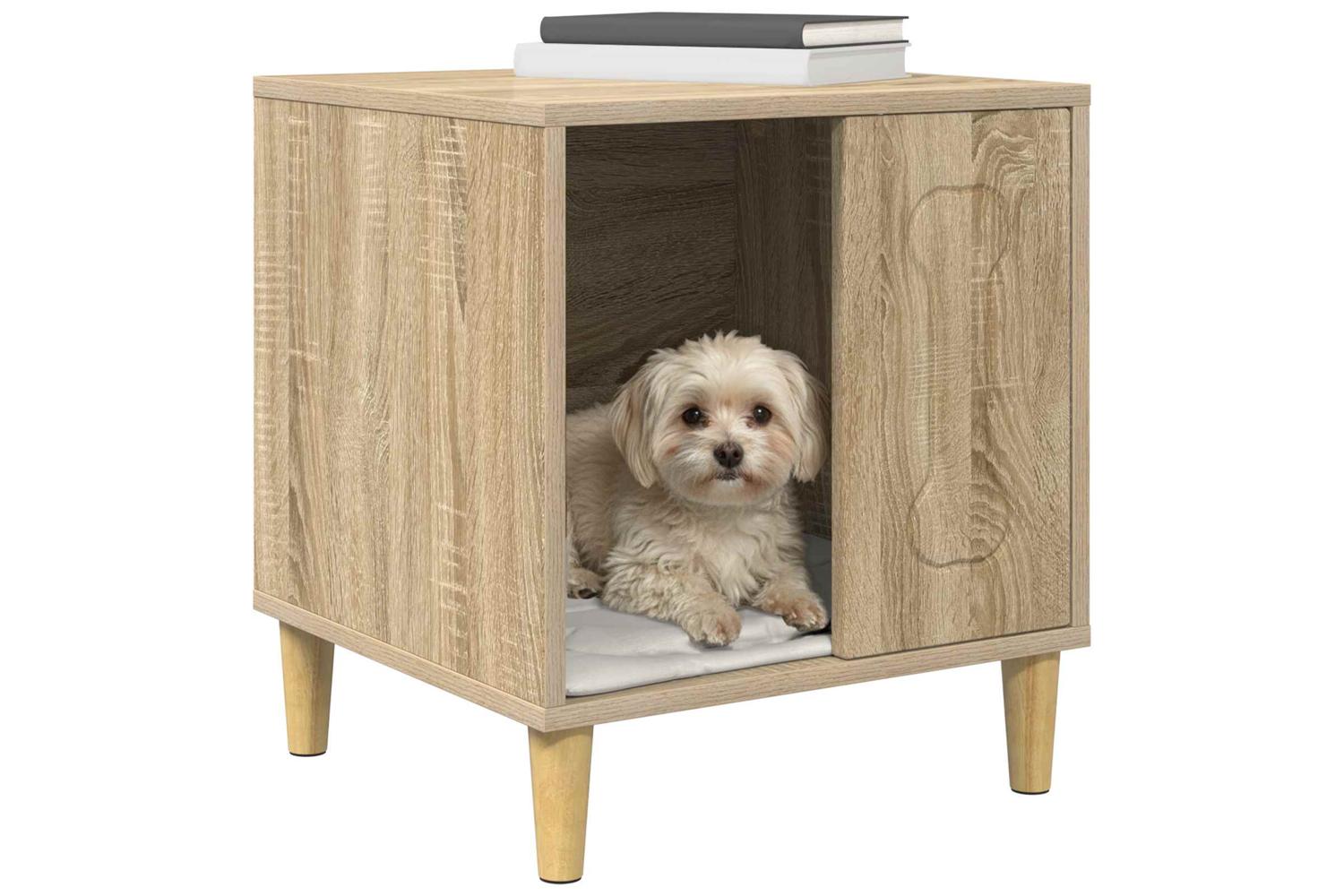 - Engineered Wood Material The Modern Dog House is crafted from engineered wood, providing a robust structure that ensures longevity and reliability. Known for its flat surface and clean edges, engineered wood gives the dog house a polished finish, easily fitting in with modern home decor while offering easy maintenance.