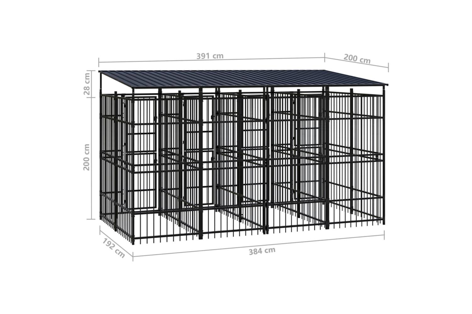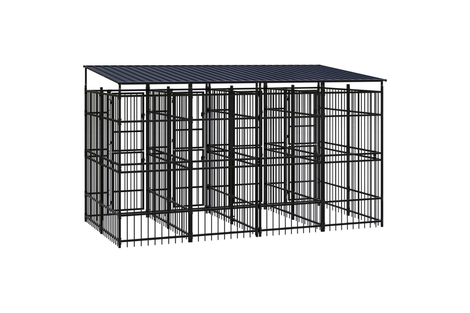 This dog kennel provides ample exercise space. The walls of steel bars help prevent mischief and unexpected accidents while enabling ventilation. Thanks to the sturdy powder-coated steel construction, this dog kennel is durable and built to last. The roof provides protection from sun, rain, snow, as well as other weather conditions. The hinged door with a lockable latch system ensures extra security and safety for your dogs.