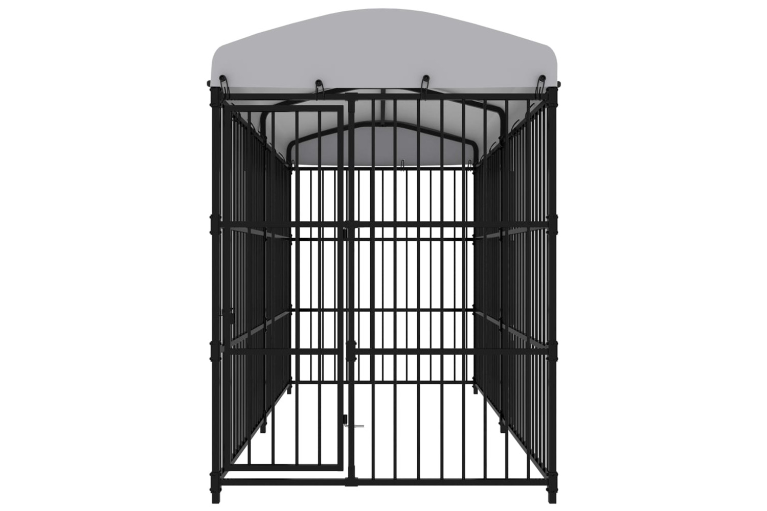 This versatile, heavy-duty dog house features multiple uses: playing, exercising, training, or simply keeping your dog safe. It will be the perfect play paradise for your furry friends! This kennel provides ample exercise space while the steel bar walls help prevent mischief and unexpected accidents while enabling ventilation. Thanks to the sturdy steel construction in powder coating, this quality dog kennel is durable and built to last. The included top canopy is weather resistant, which will provide good protection against sun and rain. Additionally, the hinged door has a lockable latch system which ensures extra security and safety for your dogs. This kennel is easy to assemble.