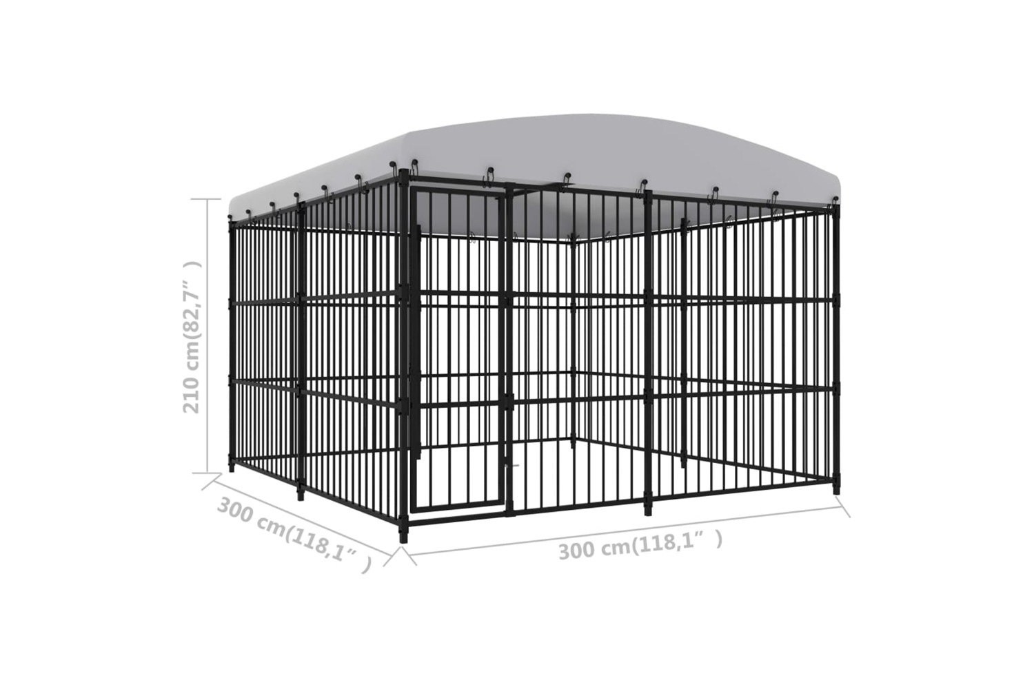 This versatile, heavy-duty dog house features multiple uses: playing, exercising, training, or simply keeping your dog safe. It will be the perfect play paradise for your furry friends! This kennel provides ample exercise space while the steel bar walls help prevent mischief and unexpected accidents while enabling ventilation. Thanks to the sturdy steel construction in powder coating, this quality dog kennel is durable and built to last. The included top canopy is weather resistant, which will provide good protection against sun and rain. Additionally, the hinged door has a lockable latch system which ensures extra security and safety for your dogs. This kennel is easy to assemble.