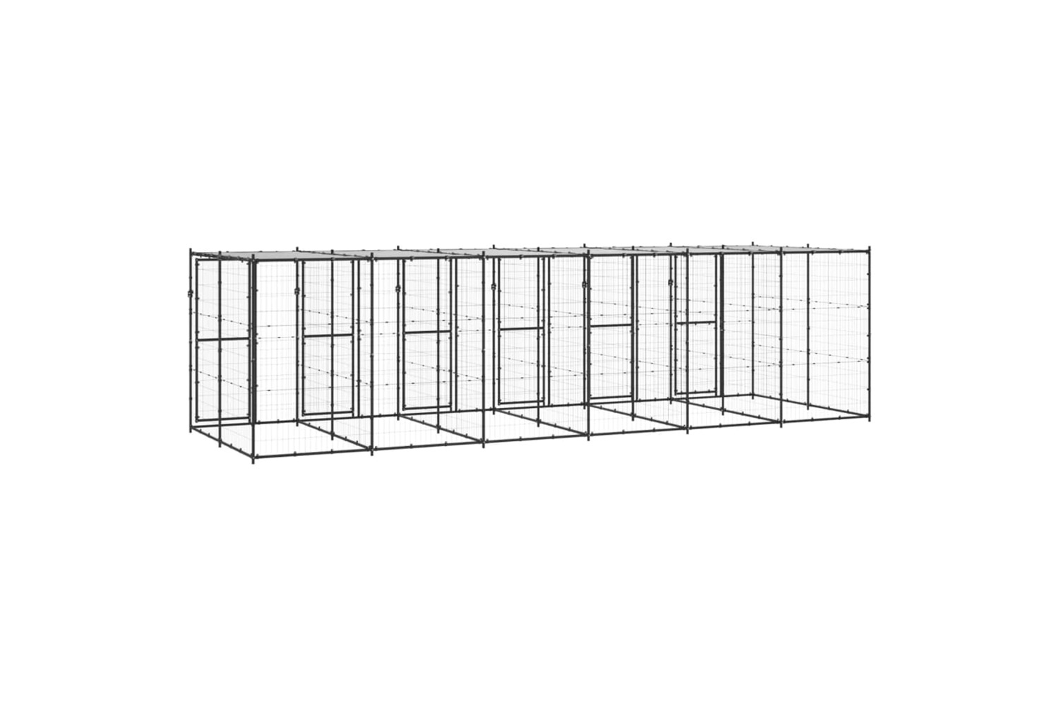 This dog kennel provides ample exercise space. The mesh all around helps prevent mischief and unexpected accidents while enabling ventilation. Thanks to the sturdy powder-coated steel construction, this dog kennel is durable and built to last. Made of PE, the included top canopy is water-resistant and UV-resistant, providing protection from sun, rain, snow, as well as other weather conditions. The hinged door with a lockable latch system ensures extra security and safety for your dogs.