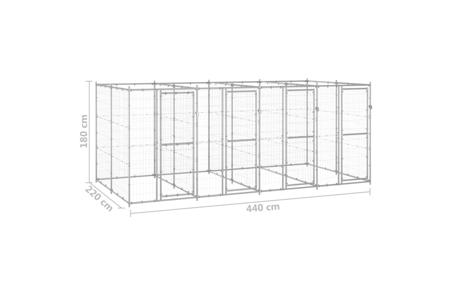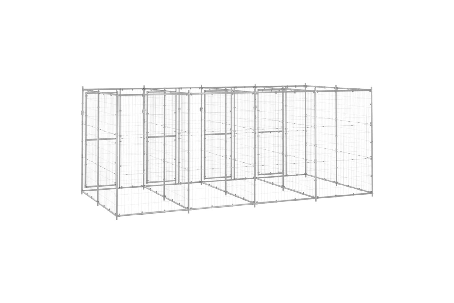 This dog kennel provides ample exercise space. The mesh all around helps prevent mischief and unexpected accidents while enabling ventilation. Thanks to the sturdy galvanised steel construction, this dog kennel is durable and built to last. The hinged door with a lockable latch system ensures extra security and safety for your dogs.