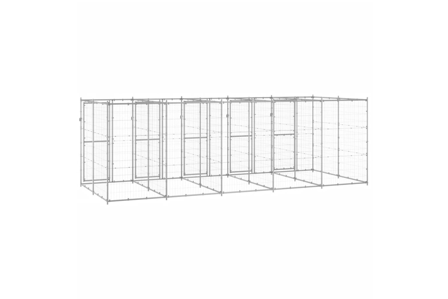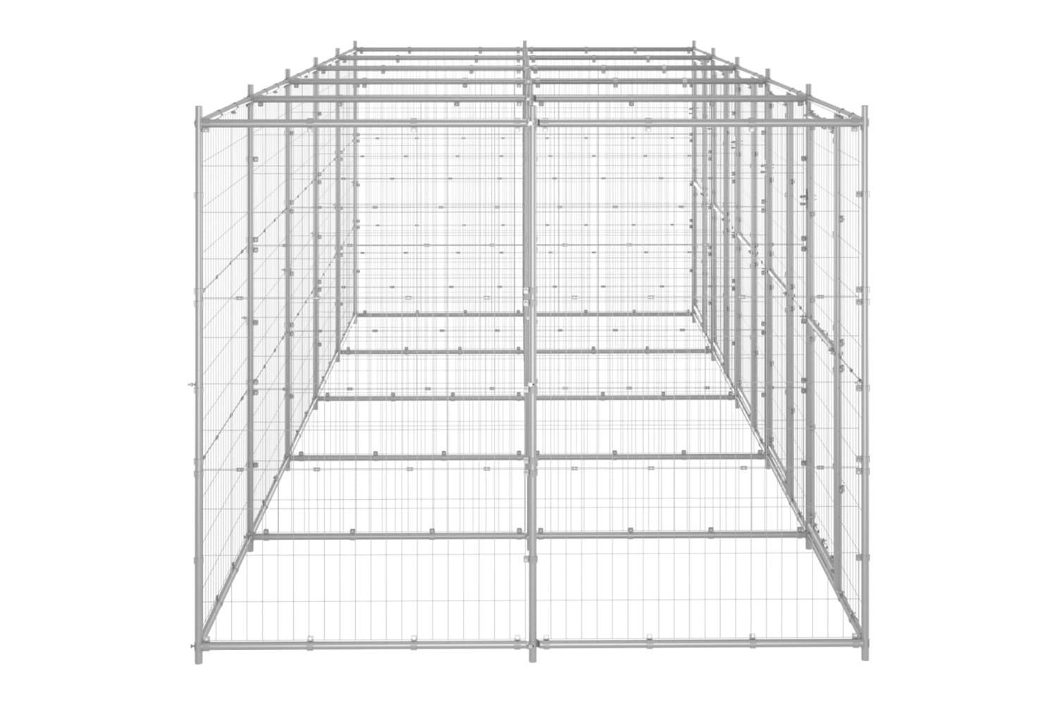 This dog kennel provides ample exercise space. The mesh all around helps prevent mischief and unexpected accidents while enabling ventilation. Thanks to the sturdy galvanised steel construction, this dog kennel is durable and built to last. The hinged door with a lockable latch system ensures extra security and safety for your dogs.