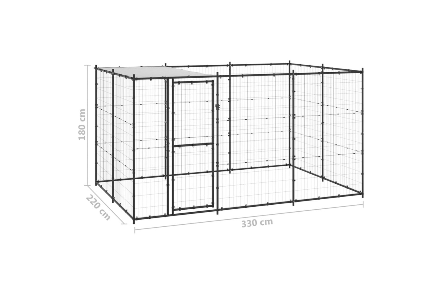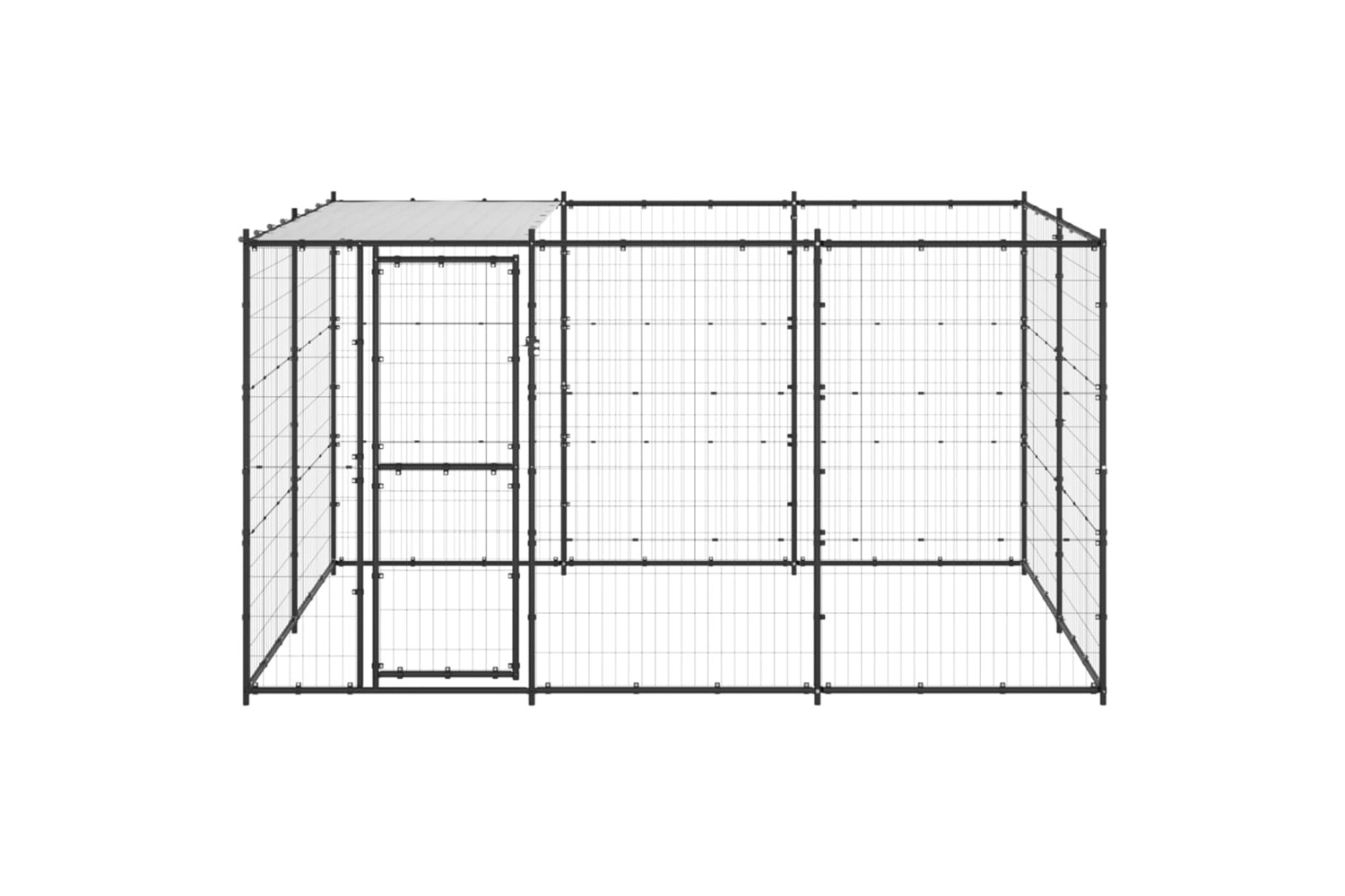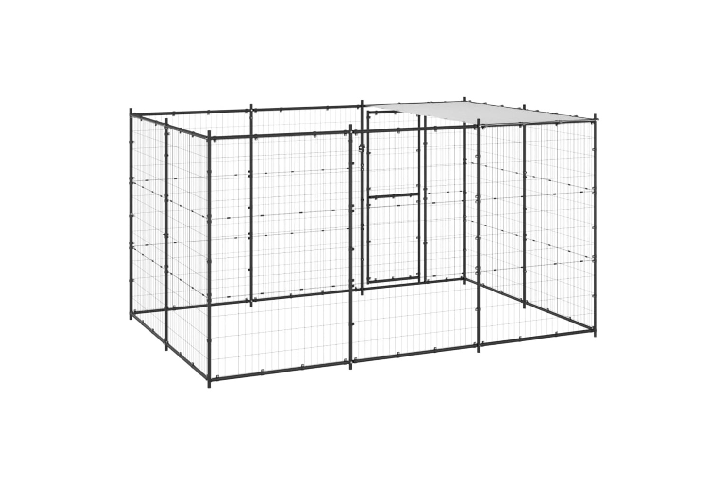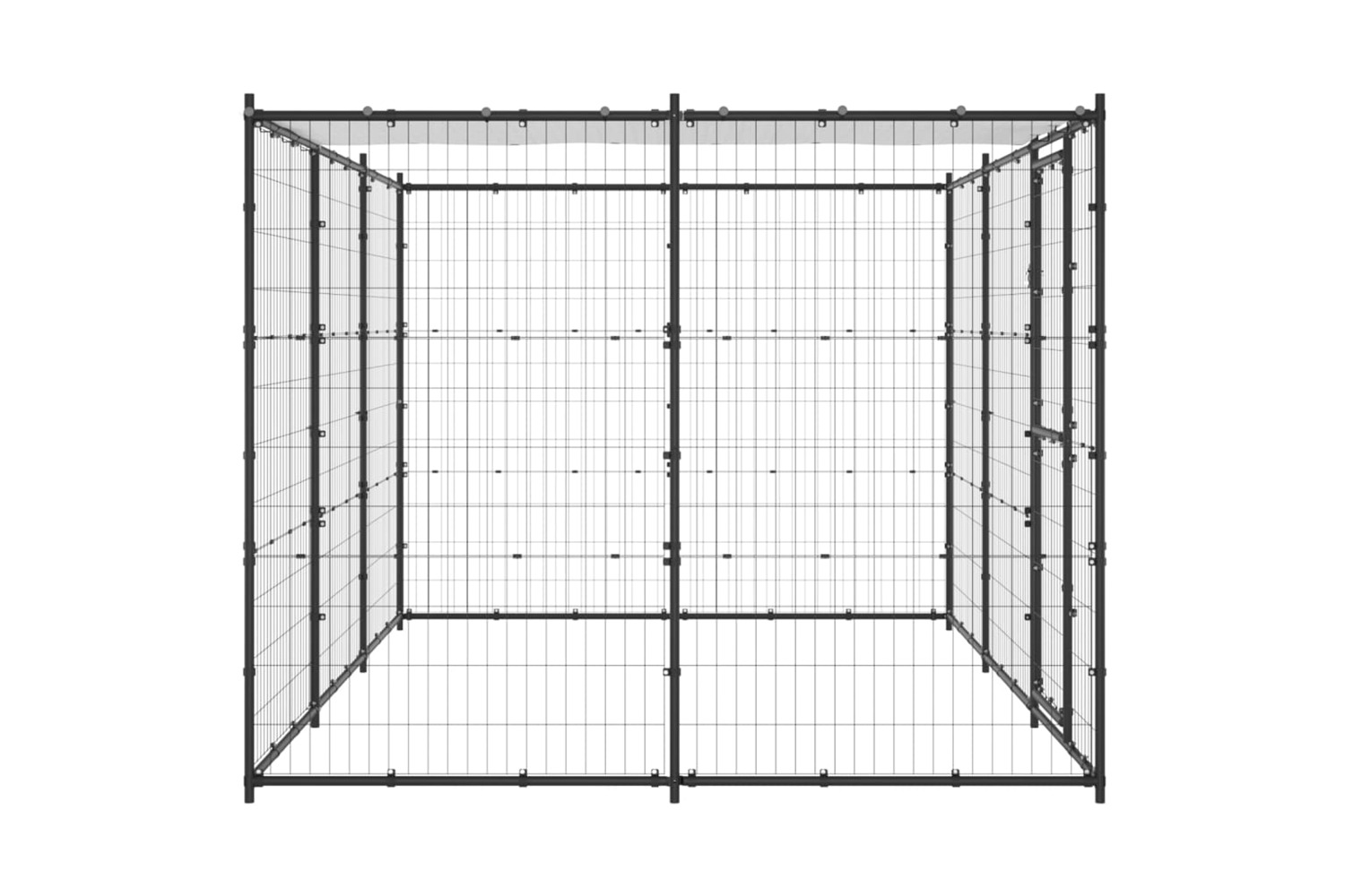 This dog kennel provides ample exercise space. The mesh all around helps prevent mischief and unexpected accidents while enabling ventilation. Thanks to the sturdy powder-coated steel construction, this dog kennel is durable and built to last. Made of PE, the included top canopy is water-resistant and UV-resistant, providing protection from sun, rain, snow, as well as other weather conditions. The hinged door with a lockable latch system ensures extra security and safety for your dogs.