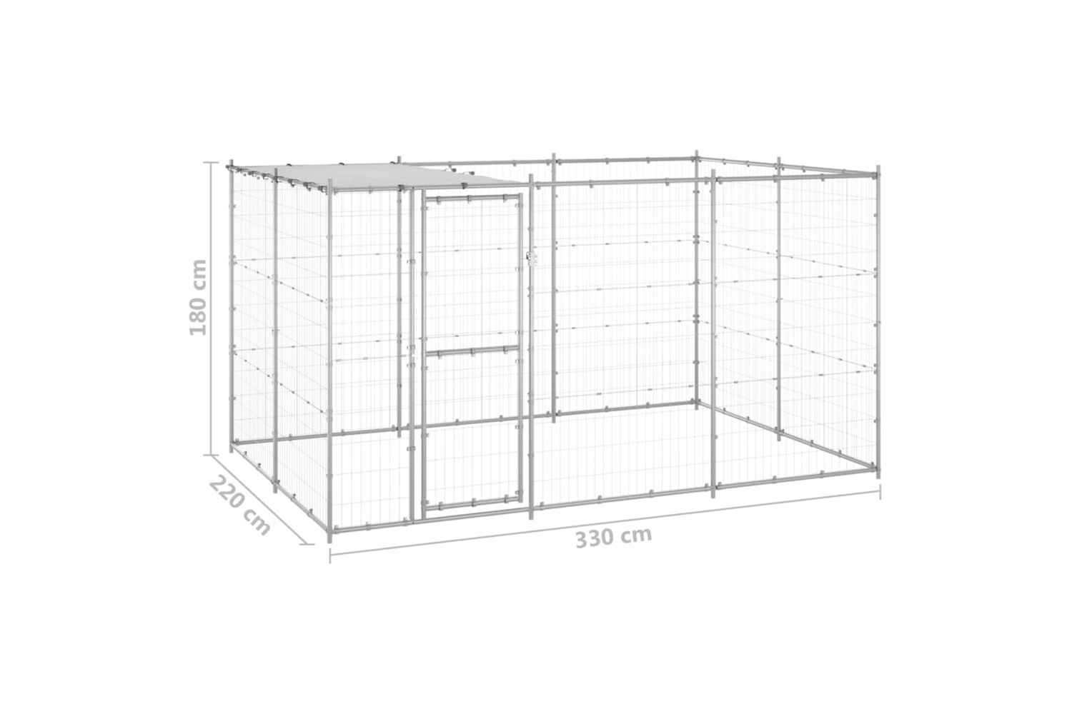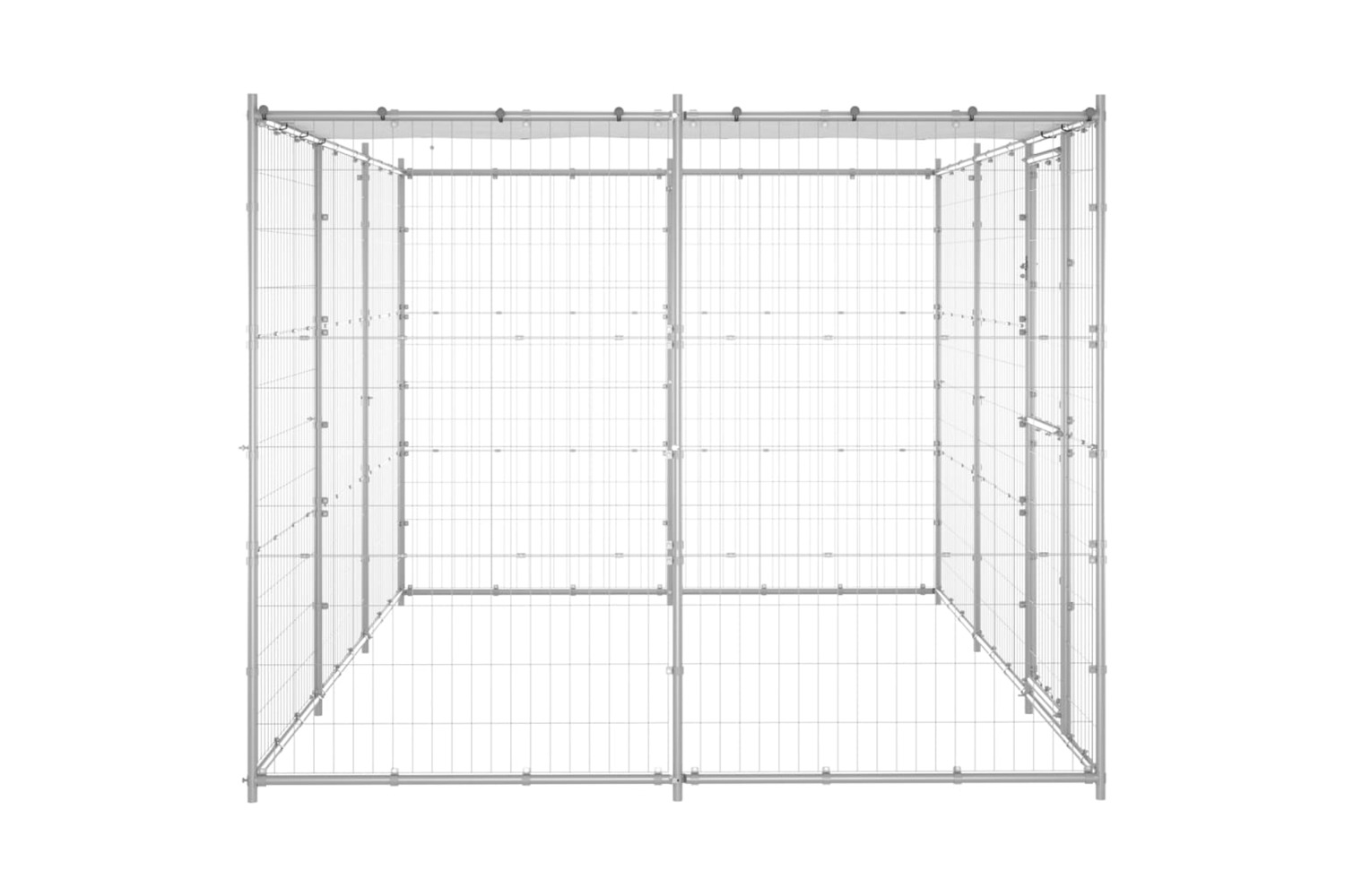 This dog kennel provides ample exercise space. The mesh all around helps prevent mischief and unexpected accidents while enabling ventilation. Thanks to the sturdy galvanised steel construction, this dog kennel is durable and built to last. Made of PE, the included top canopy is water-resistant and UV-resistant, providing protection from sun, rain, snow, as well as other weather conditions. The hinged door with a lockable latch system ensures extra security and safety for your dogs.