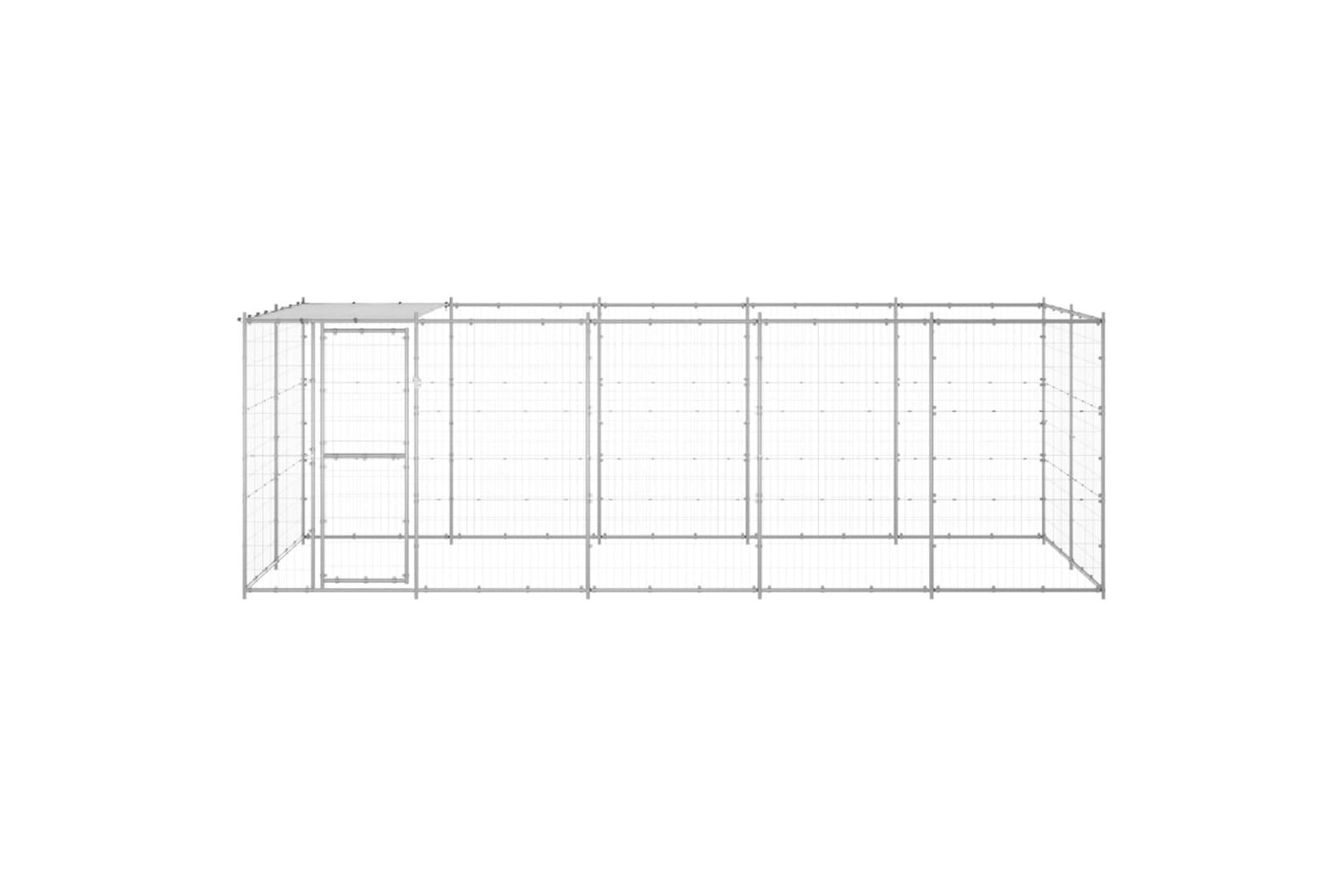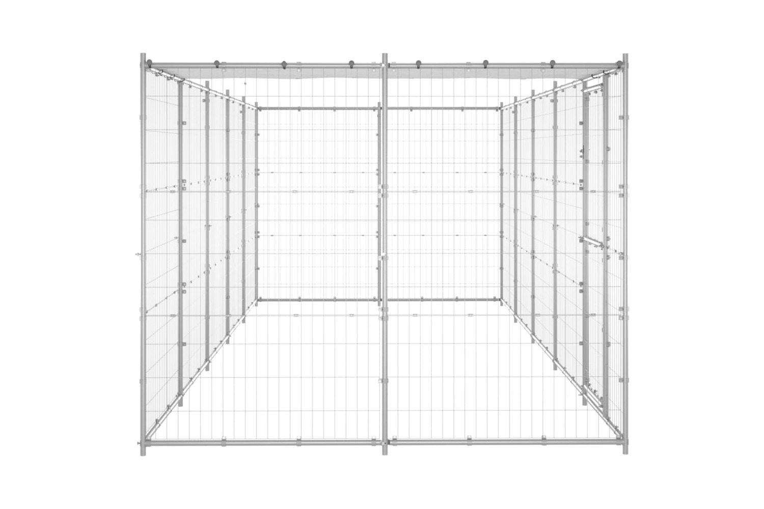 This dog kennel provides ample exercise space. The mesh all around helps prevent mischief and unexpected accidents while enabling ventilation. Thanks to the sturdy galvanised steel construction, this dog kennel is durable and built to last. Made of PE, the included top canopy is water-resistant and UV-resistant, providing protection from sun, rain, snow, as well as other weather conditions. The hinged door with a lockable latch system ensures extra security and safety for your dogs.