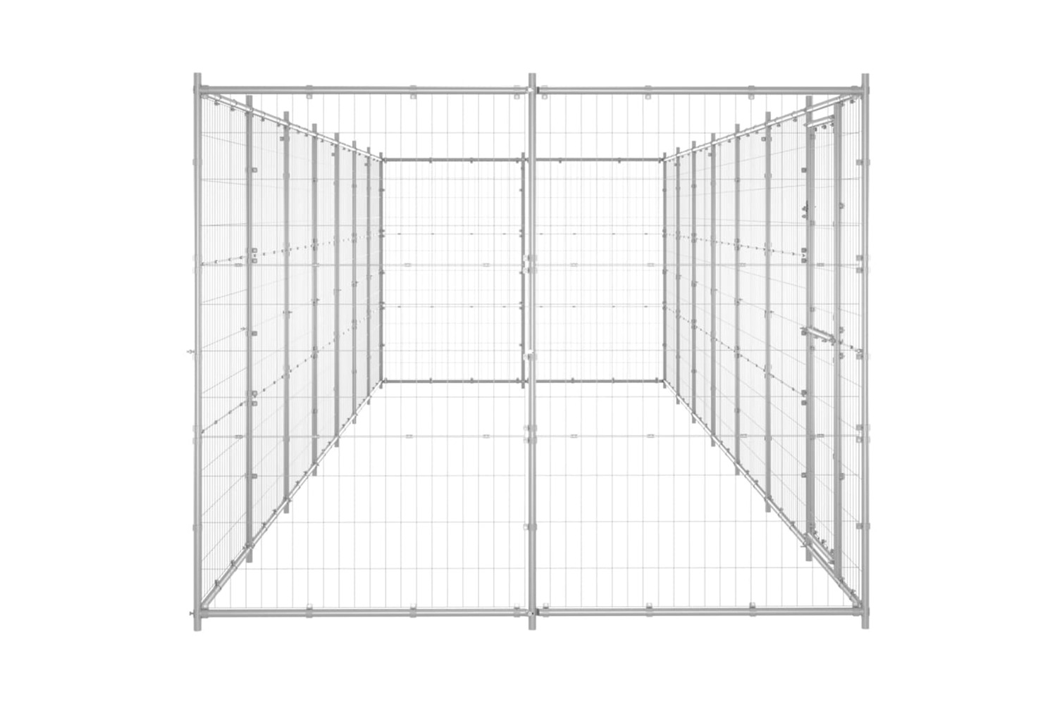 This dog kennel provides ample exercise space. The mesh all around helps prevent mischief and unexpected accidents while enabling ventilation. Thanks to the sturdy galvanised steel construction, this dog kennel is durable and built to last. The hinged door with a lockable latch system ensures extra security and safety for your dogs.