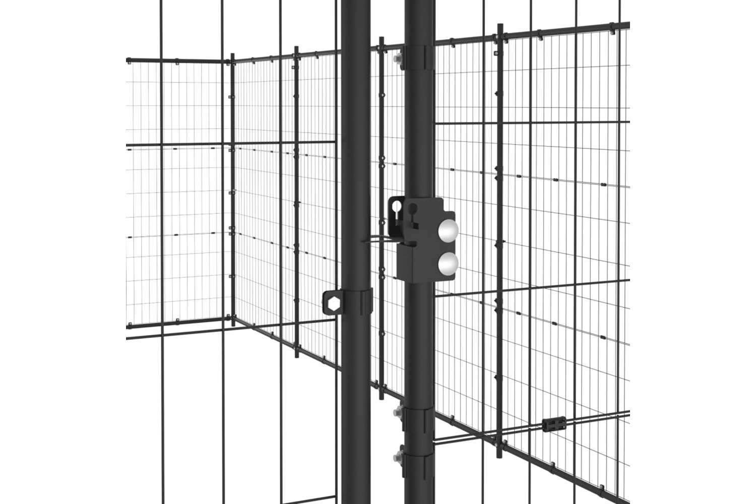 This dog kennel provides ample exercise space. The mesh all around helps prevent mischief and unexpected accidents while enabling ventilation. Thanks to the sturdy powder-coated steel construction, this dog kennel is durable and built to last. The hinged door with a lockable latch system ensures extra security and safety for your dogs.