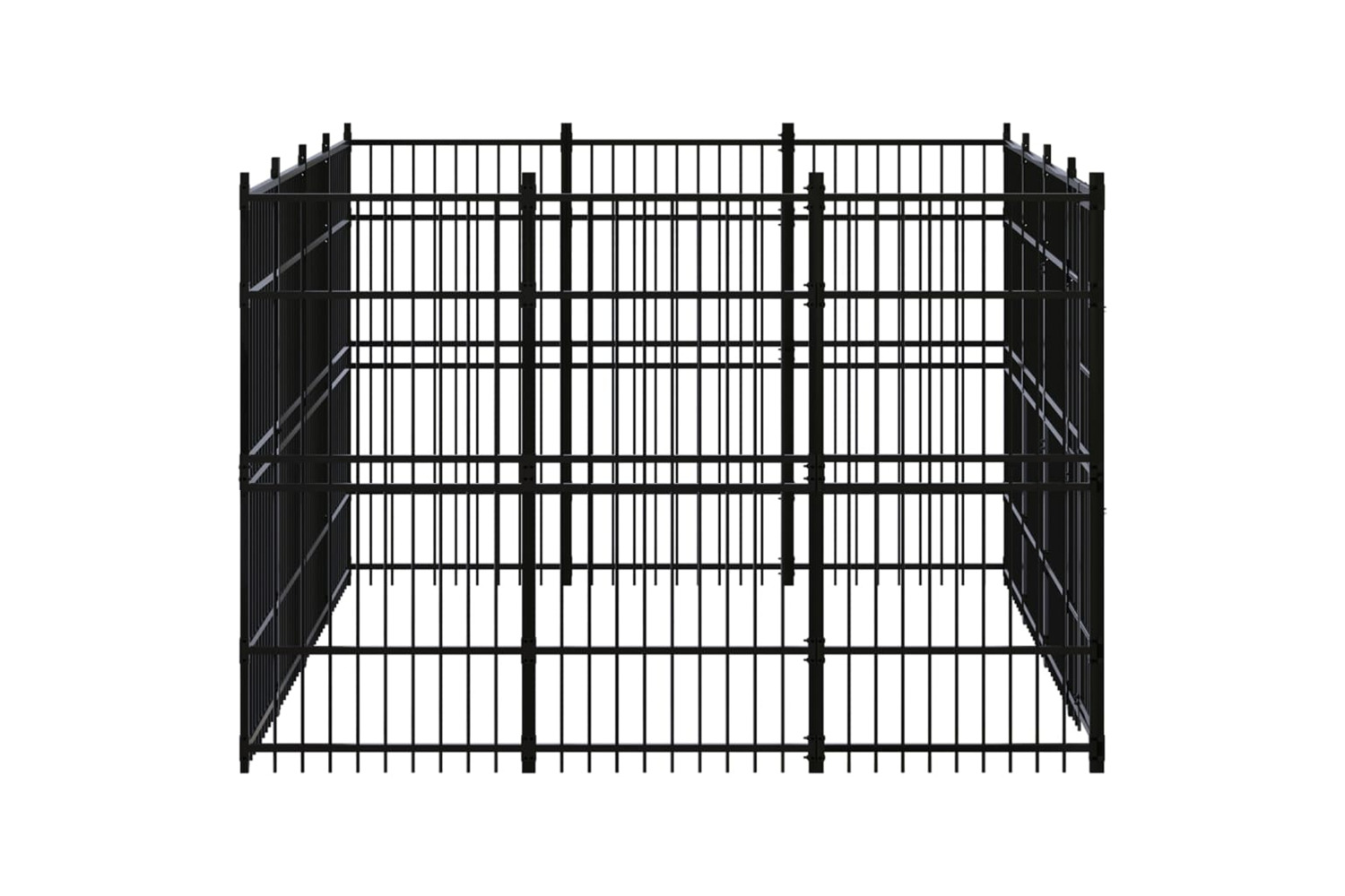 This dog kennel provides ample exercise space. The walls of steel bars help prevent mischief and unexpected accidents while enabling ventilation. Thanks to the sturdy powder-coated steel construction, this dog kennel is durable and built to last. The hinged door with a lockable latch system ensures extra security and safety for your dogs.