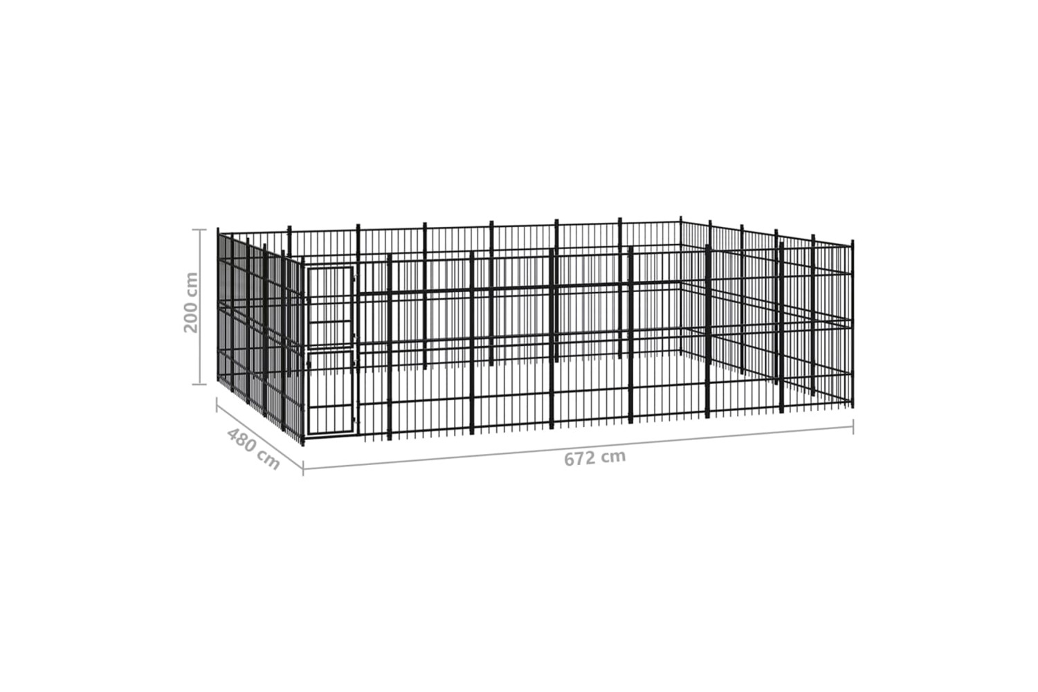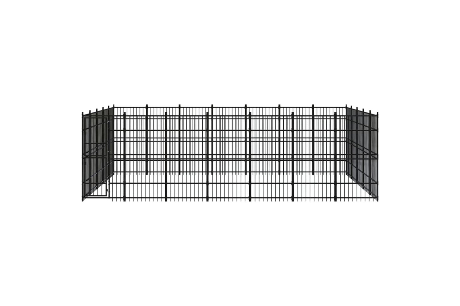 This dog kennel provides ample exercise space. The walls of steel bars help prevent mischief and unexpected accidents while enabling ventilation. Thanks to the sturdy powder-coated steel construction, this dog kennel is durable and built to last. The hinged door with a lockable latch system ensures extra security and safety for your dogs.