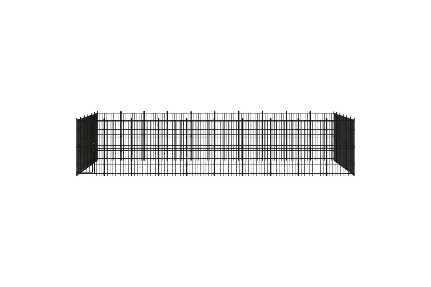This dog kennel provides ample exercise space. The walls of steel bars help prevent mischief and unexpected accidents while enabling ventilation. Thanks to the sturdy powder-coated steel construction, this dog kennel is durable and built to last. The hinged door with a lockable latch system ensures extra security and safety for your dogs.