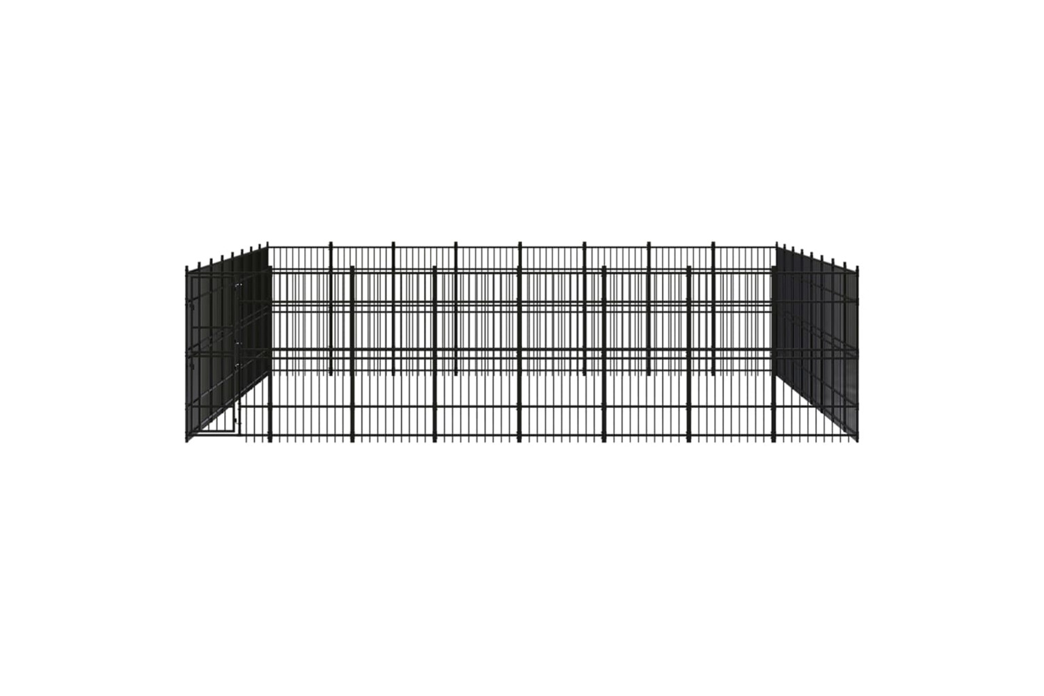 This dog kennel provides ample exercise space. The walls of steel bars help prevent mischief and unexpected accidents while enabling ventilation. Thanks to the sturdy powder-coated steel construction, this dog kennel is durable and built to last. The hinged door with a lockable latch system ensures extra security and safety for your dogs.