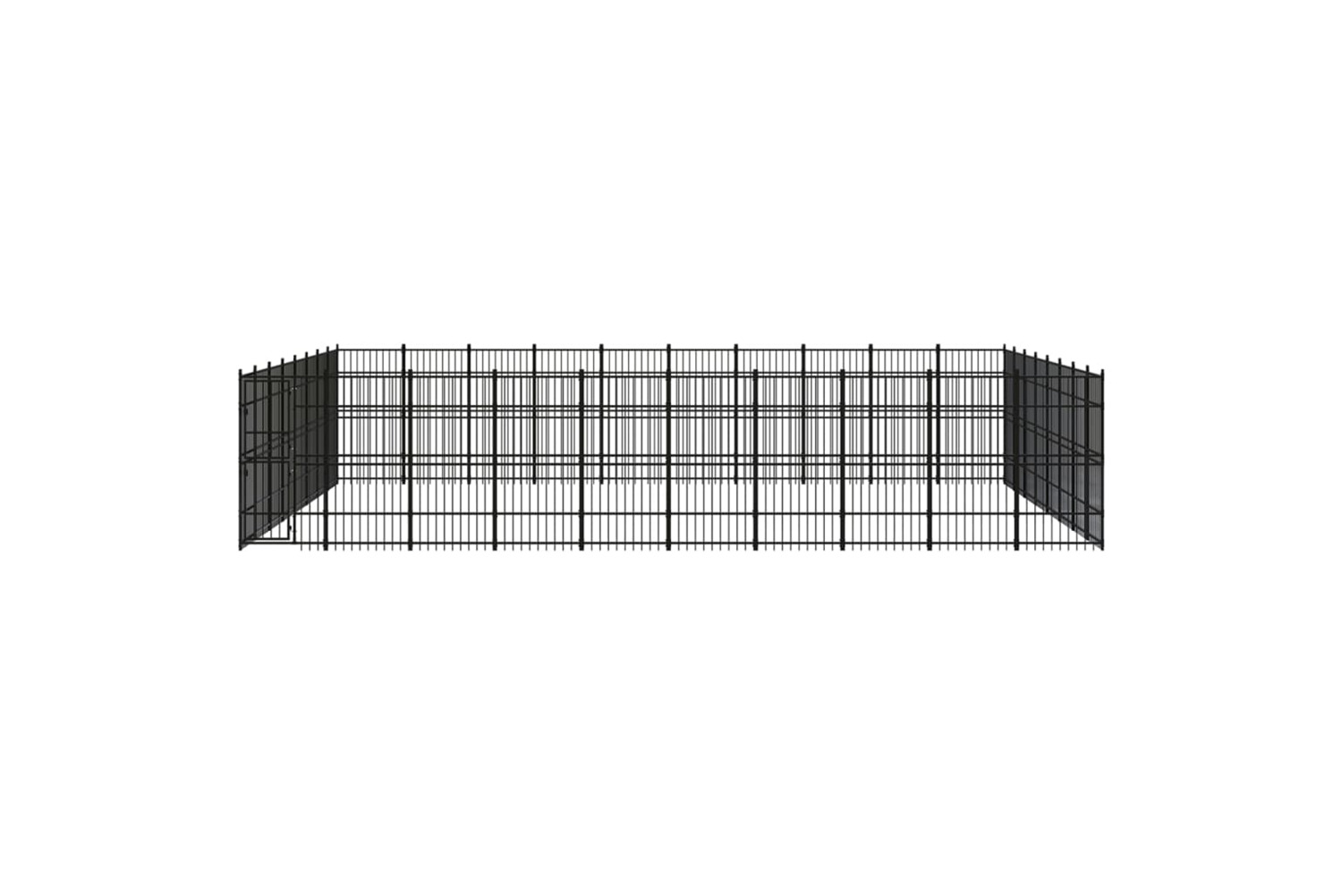 This dog kennel provides ample exercise space. The walls of steel bars help prevent mischief and unexpected accidents while enabling ventilation. Thanks to the sturdy powder-coated steel construction, this dog kennel is durable and built to last. The hinged door with a lockable latch system ensures extra security and safety for your dogs.