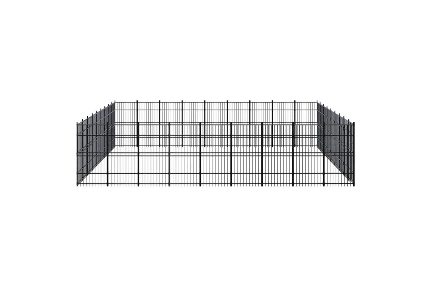 This dog kennel provides ample exercise space. The walls of steel bars help prevent mischief and unexpected accidents while enabling ventilation. Thanks to the sturdy powder-coated steel construction, this dog kennel is durable and built to last. The hinged door with a lockable latch system ensures extra security and safety for your dogs.