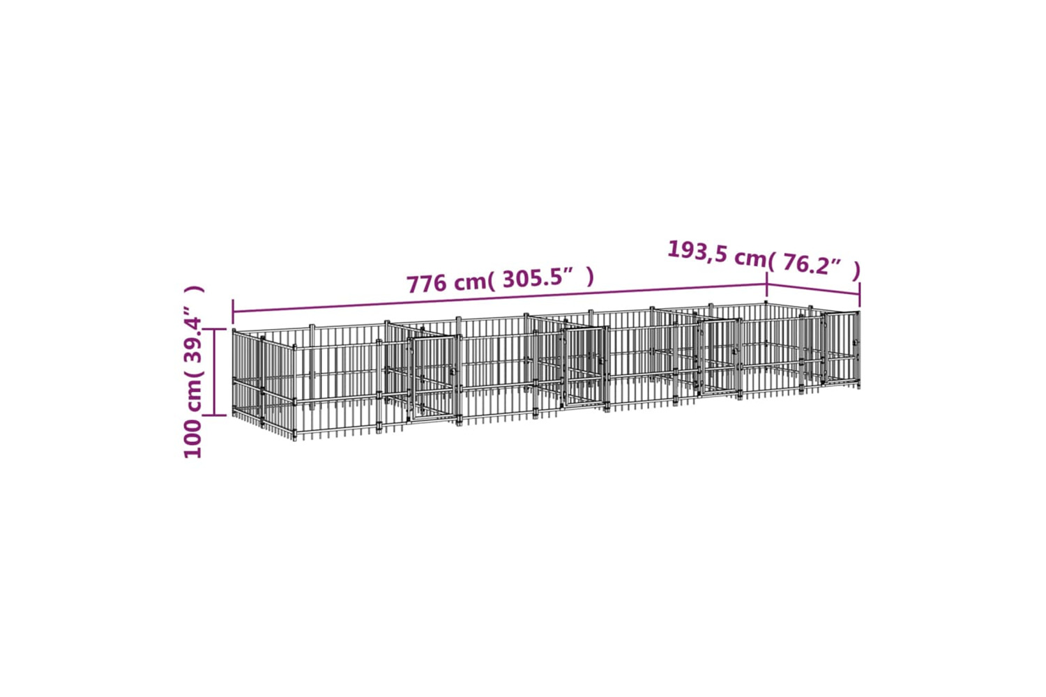 - Dimensions: 776 x 193.5 x 100 cm (L x W x H)