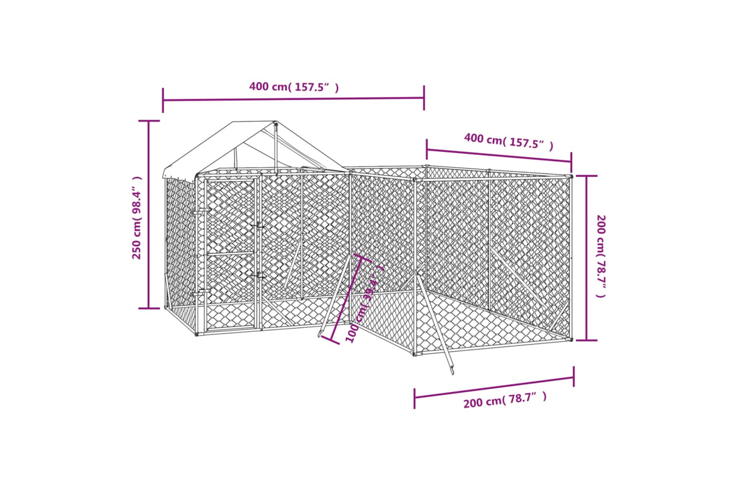 This practical and spacious outdoor dog kennel with roof is a perfect choice as an outdoor enclosure for keeping your animals safe and comfortable.
