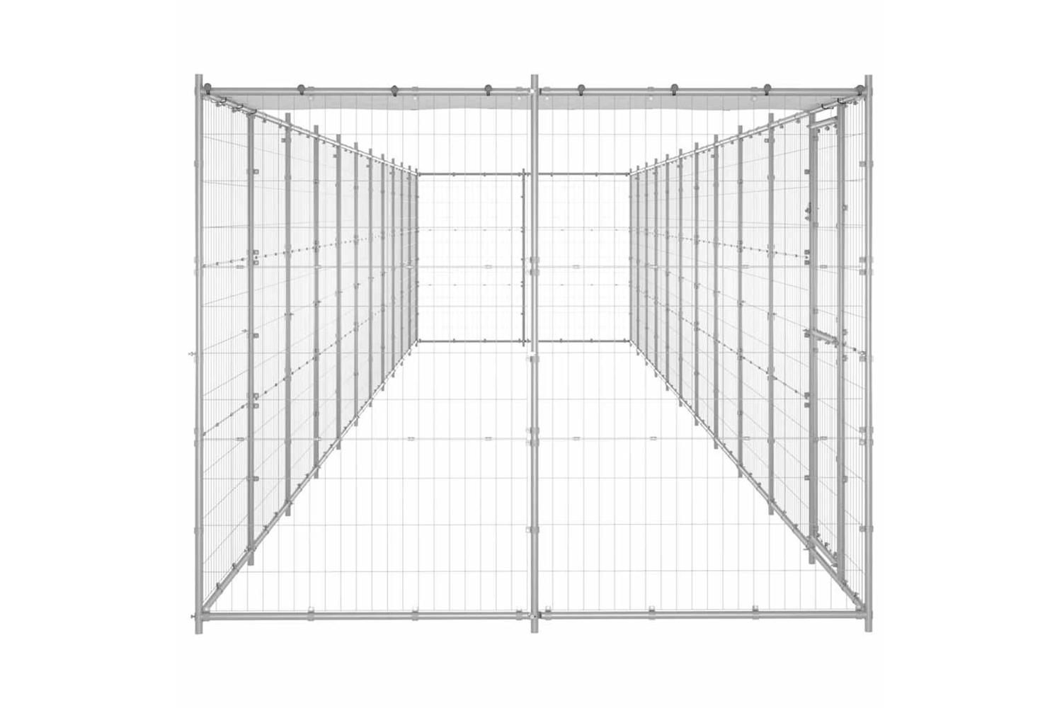 This dog kennel provides ample exercise space. The mesh all around helps prevent mischief and unexpected accidents while enabling ventilation. Thanks to the sturdy galvanised steel construction, this dog kennel is durable and built to last. Made of PE, the included top canopy is water-resistant and UV-resistant. The hinged door with a lockable latch system ensures extra security and safety for your dogs.