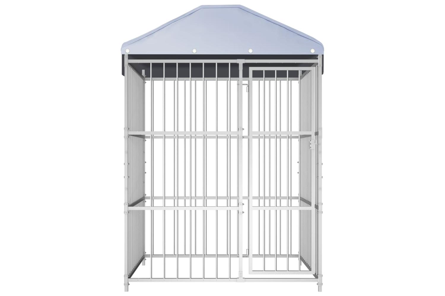 This dog kennel provides ample exercise space while the steel bar walls help prevent mischief and unexpected accidents, thus enabling great ventilation. Thanks to the sturdy and robust steel construction, this quality dog kennel is exceedingly durable and built to last. Made of 100% polyethylene, the included top canopy is weather resistant, which will provide good protection against sun and rain. Additionally, the hinged door features a lockable latch system which ensures extra security and safety for your dogs.