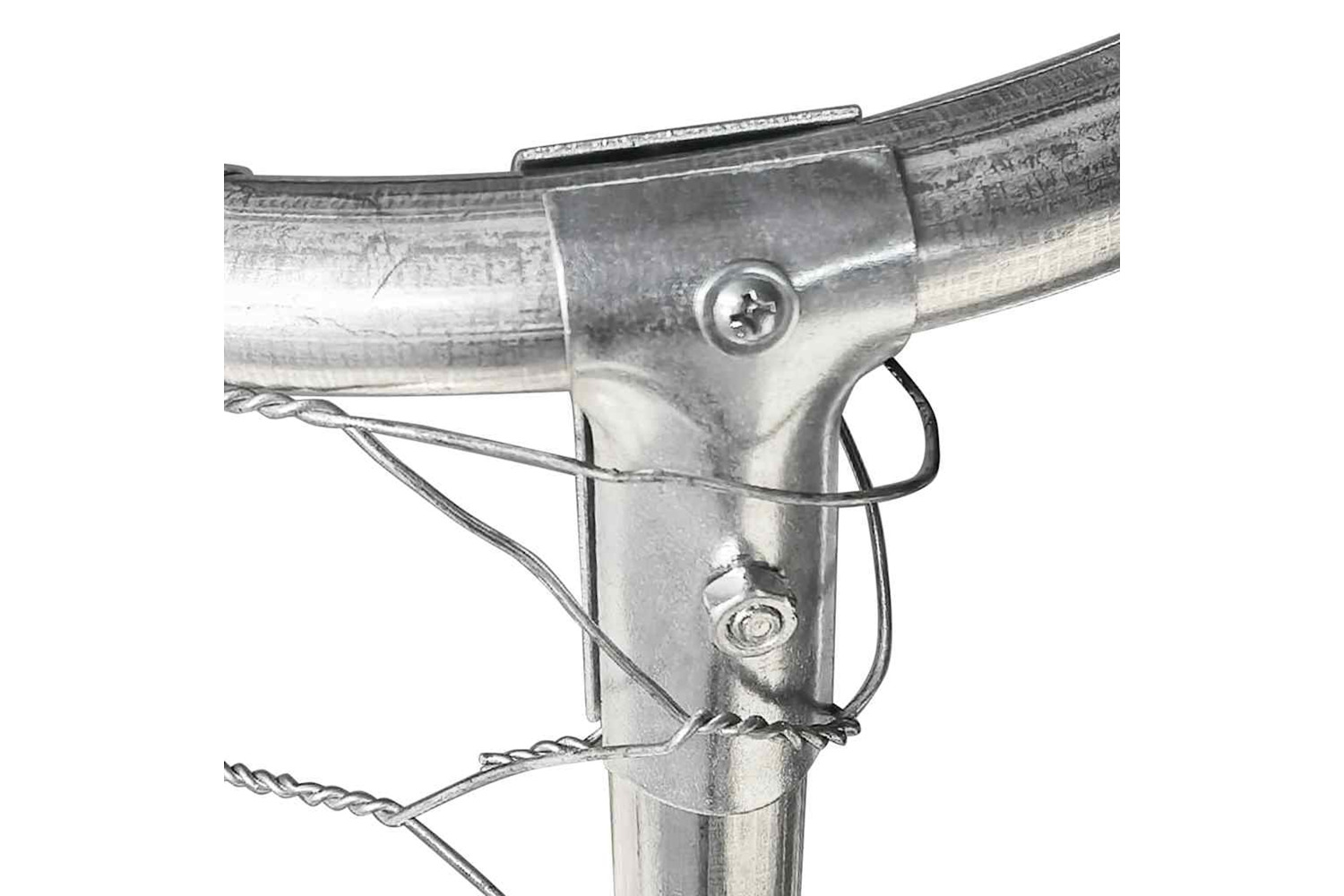 This large dog kennel provides ample exercise space while the mesh all around helps prevent mischief and unexpected accidents while enabling ventilation. Thanks to the sturdy and heavy-duty galvanised steel construction, this quality dog kennel is durable and built to last. Made of 100% polyethylene, the included top canopy is fire-resistant and UV protected, providing protection from sun, rain, snow, as well as other weather conditions. The hinged door with lockable latch system ensures extra security and safety for your dogs.