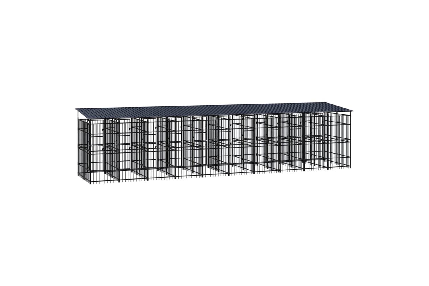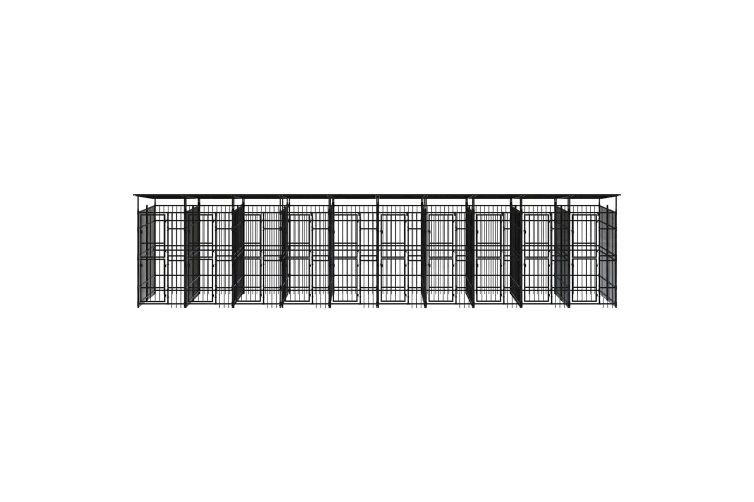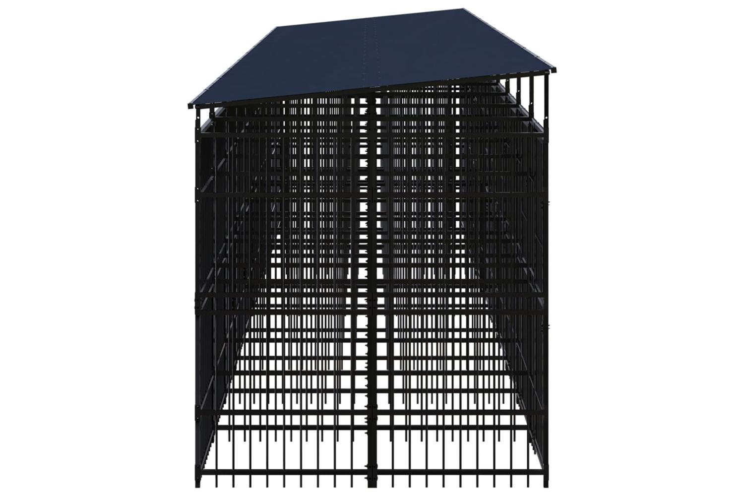 This dog kennel provides ample exercise space. The walls of steel bars help prevent mischief and unexpected accidents while enabling ventilation. Thanks to the sturdy powder-coated steel construction, this dog kennel is durable and built to last. The roof provides protection from sun, rain, snow, as well as other weather conditions. The hinged door with a lockable latch system ensures extra security and safety for your dogs.