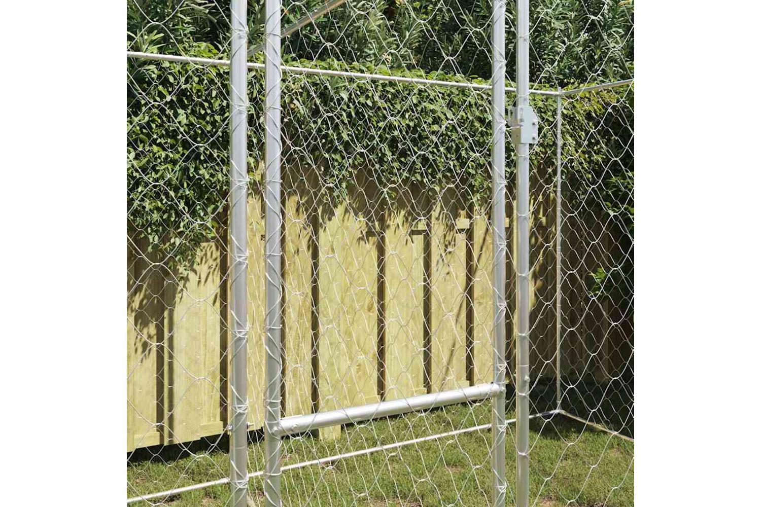 - Galvanized Steel Material Made from tough galvanized steel, known for its strength and rust resistance, this kennel provides a solid and long-lasting space for your pet. The protective coating on the steel helps it withstand weather impacts, keeping it looking good and standing strong over time.
