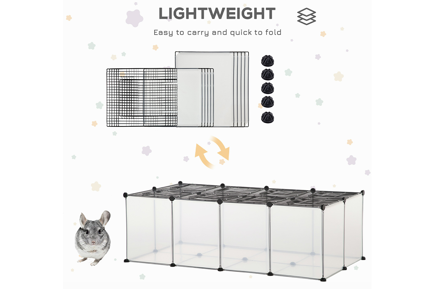 This playpen from PawHut provides a spacious home for your pets. Perfect for guinea pigs, chinchillas and hamsters, they'll have lots of room to rest and play and you can keep watch, thanks to the open and visible design at the top. You can also change the shape and size – perfect for different rooms, whilst the multi-angle connectors make it simple to set up and take down. It's light in weight and can be folded, so it's easy to move, store and doesn't take up too much space.