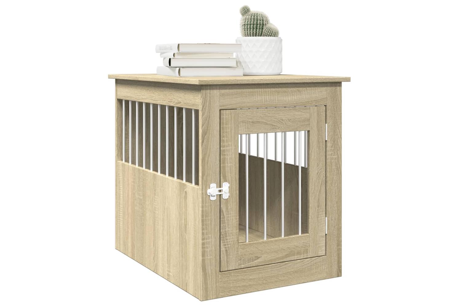 This dog crate furniture, serving as both a dog cage and an end table, makes a practical and eye-catching addition to your living room.